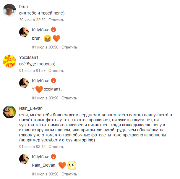всегда практически сразу же овтечает на посты муне малине киттиклав и они его алйкали каждая, что делают они не так часто.