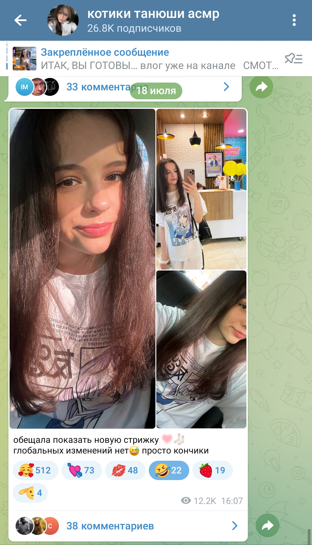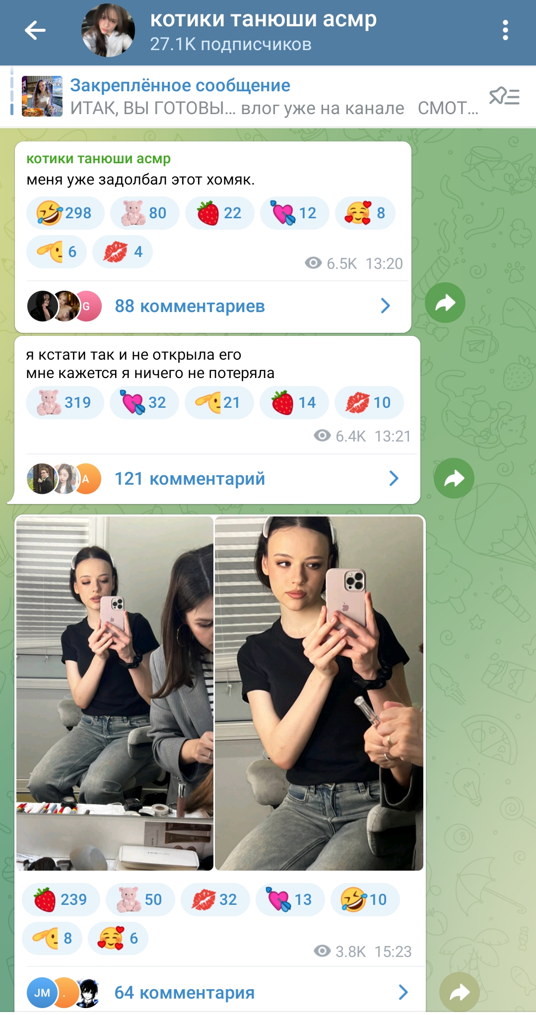 кстати интеерсно до неё дошло что её популрность держалась на образе школьницы ии она до сих пор недоумевает что подписыыться меньше стало людей а в телеге отписываются масссово кстати.