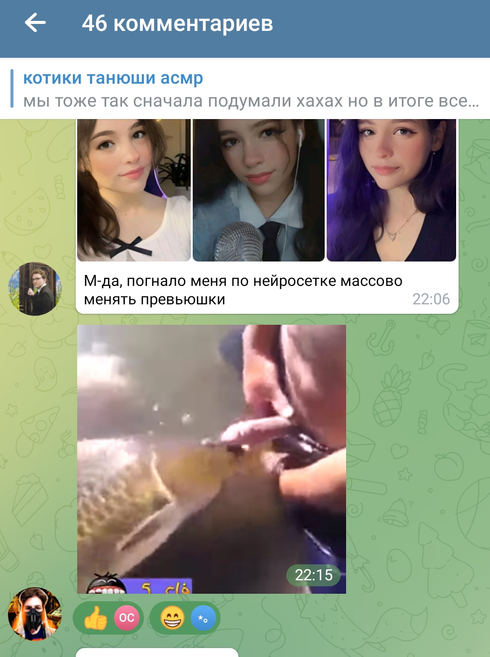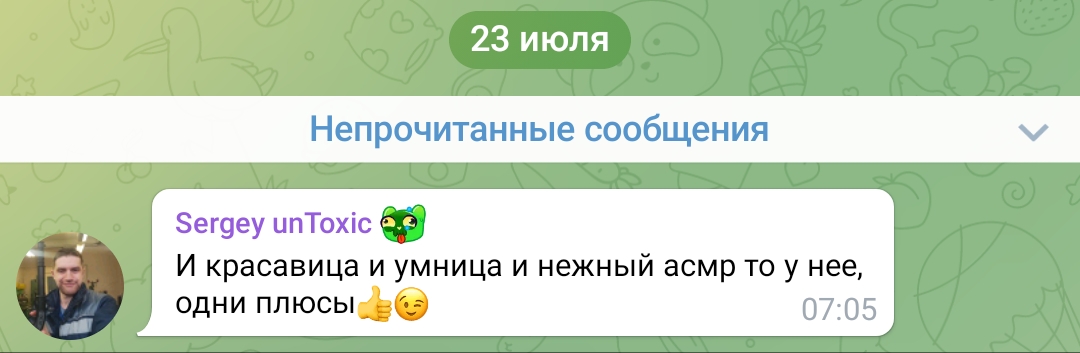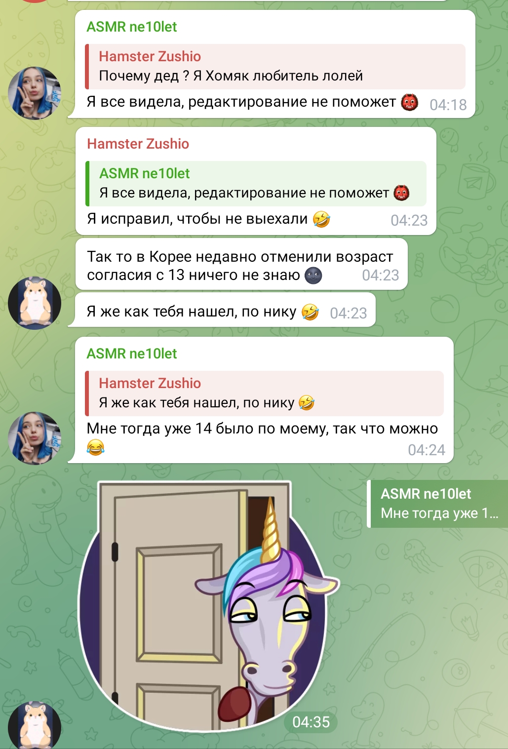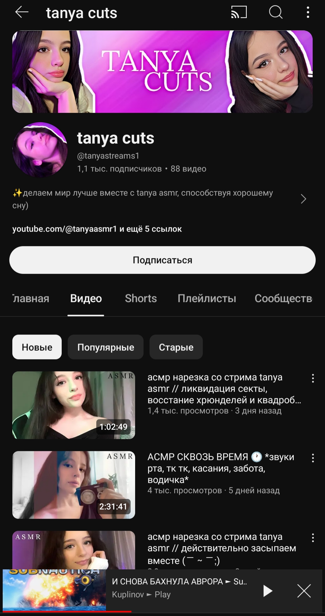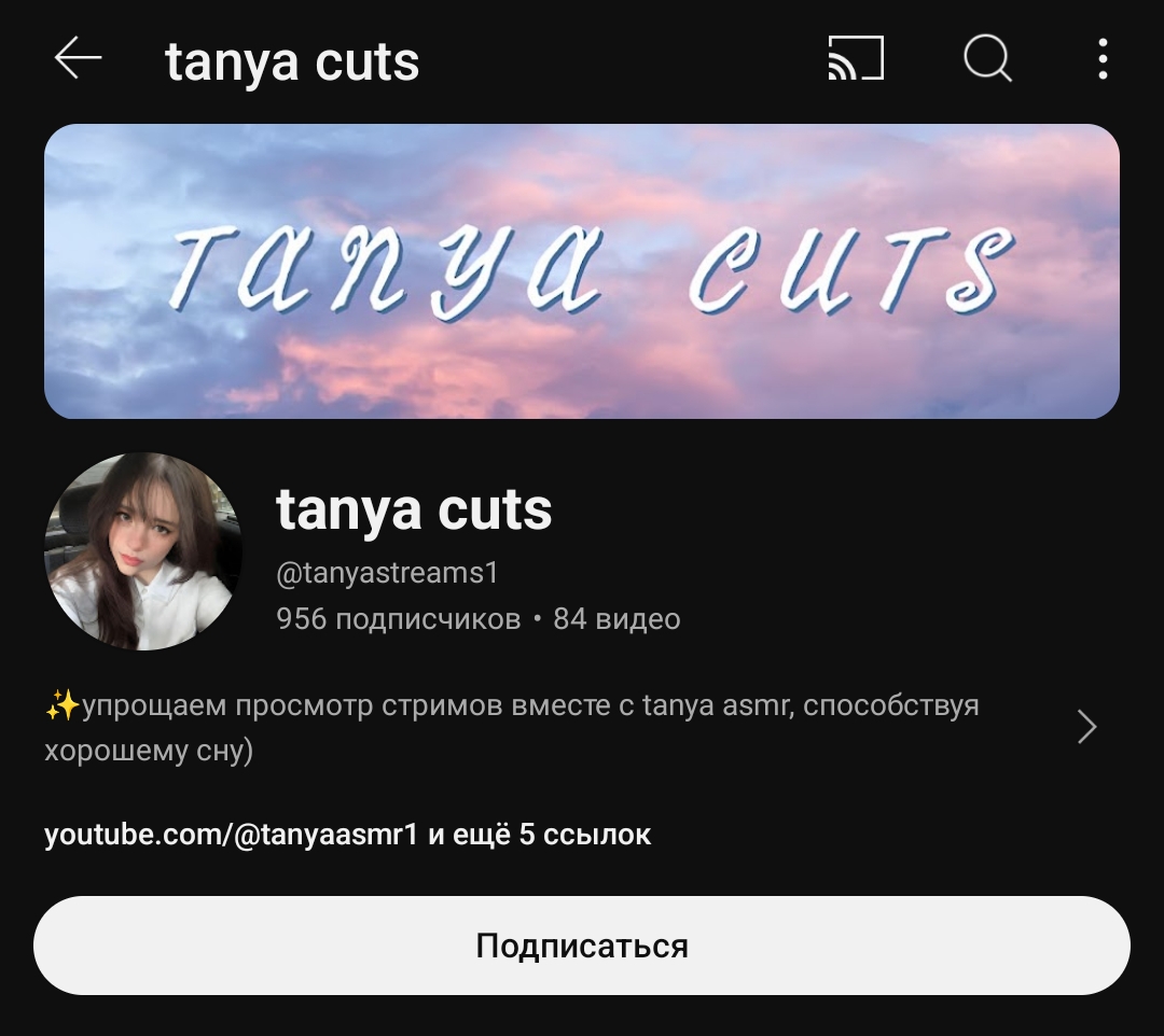 А вобоще Танечка уже взрослая сформировавшаяся фертильная девушка со сформировавшимися вкусами и предпочтениями. Ей удовлетворить свои базовые потребности как грибок срезать. Зачем обсуждать горизонт ее личных отшошений? Там все алмазно. А асмр у нее зачетное (особенно tatti asmr). Смотреть на Танечку - это эстетическое удовольствие высшей формации. P.s.: Ля какой в треде миленький комнатный нахуйпосылатель, кухонный каратист, диванный ниндзя. Аргументы?