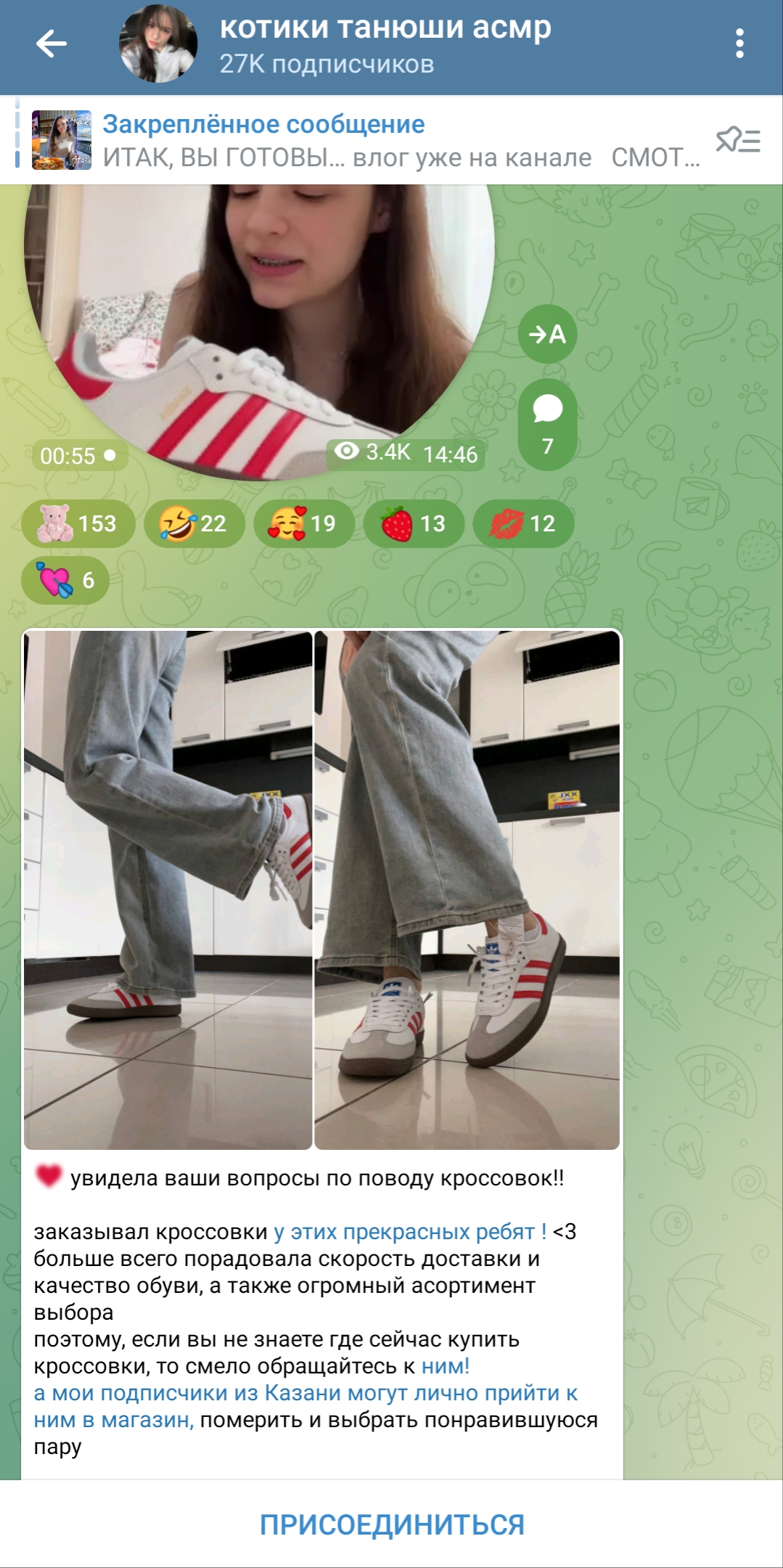 они ещё с твоего блядского макияжа не отошли что девки что пацаны а ты им про какие-то адидасы, у них нет денег на айфоны и адидасы Таня, не все живут в трёхах за 11 миллионов пойми ты уже наконец.