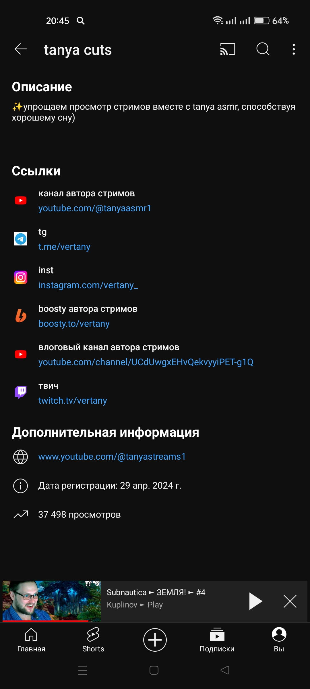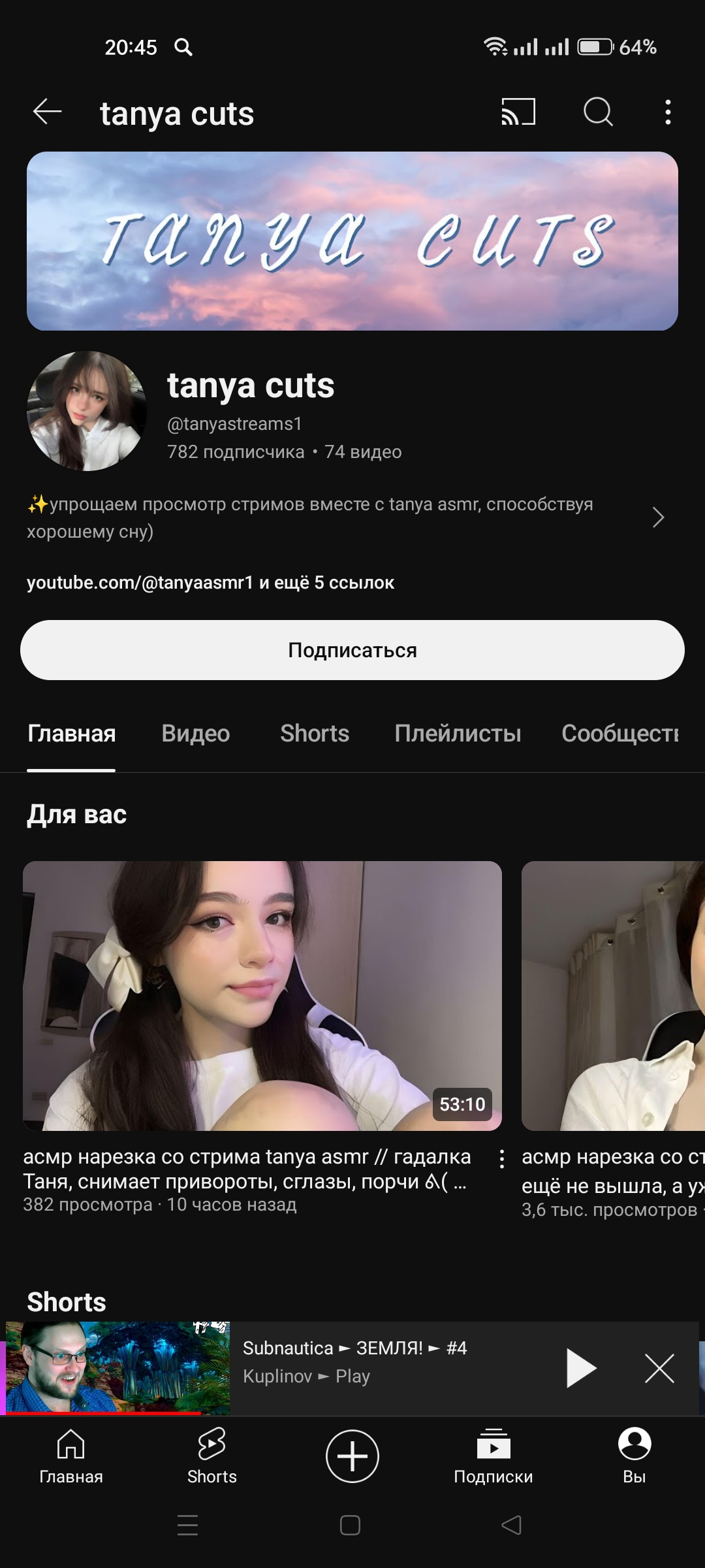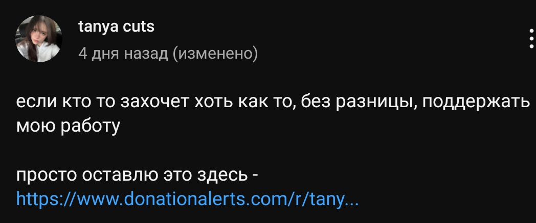 если кому интересно, то у неё абсолютное затишье, ни в телеграм канале ни дане ни в личке телеги ничего. наверное расстроена что не поступила куда хотела, а быть может активно готовится к переезду, ну или всё же занимается монтажом обещанного какого-то видео которое если ей оно не понравится то не выложит. ещё про егэ вроде обещала видос, но видимо там влог, а блогерша из Тани никудышная пока что, она больше стримерша и создатель контента сюжетного.