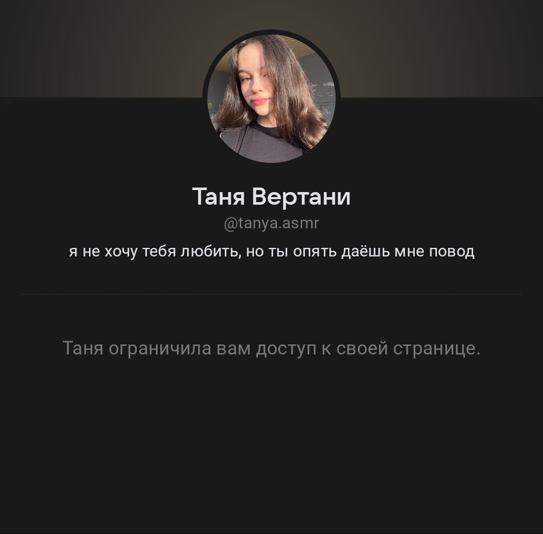 1. абсолютно всё что касается тематики "секс", Таня лично блокирует 2. но дане можно употреблять слова кровать и глубоко, это для него невероятный прогресс 3. Таня убрала из лички ссылку на канал чтобы мне никто не верил что это личка её, и поставила себя на аву с сися и лежащую.