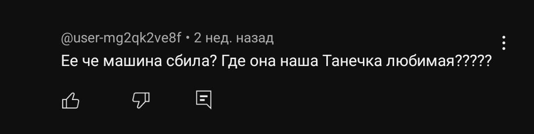 наверное недовольна нами здесь... хотя нет она недовольна всеми и в ютубе, лайки не ставит где её десятки людей засрали, и комменты в телеграме ей тоже не нравятся, закрыла...