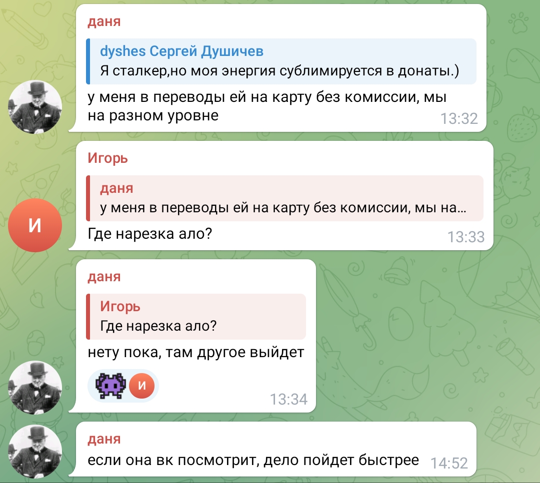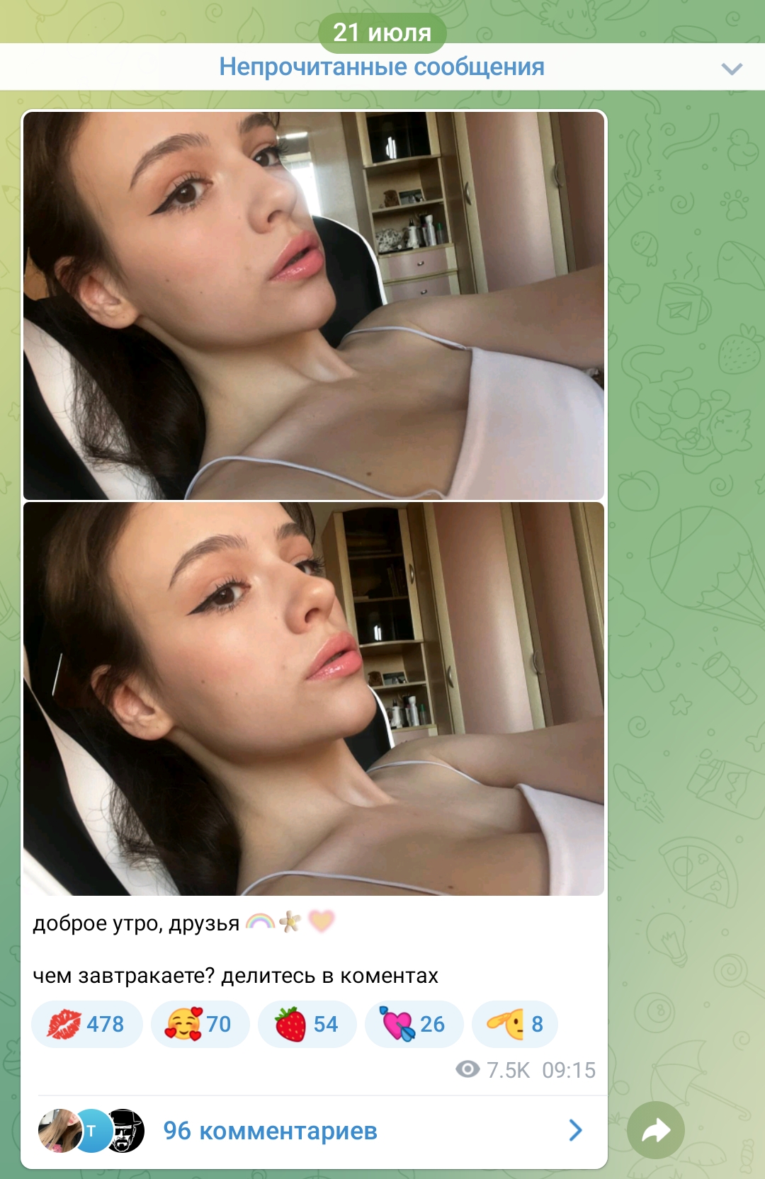 мог бы что нибудь и слить . постик из её закрытого телеграма или её гулянки пьяые, ведь у тебя есть. а так тухленько .