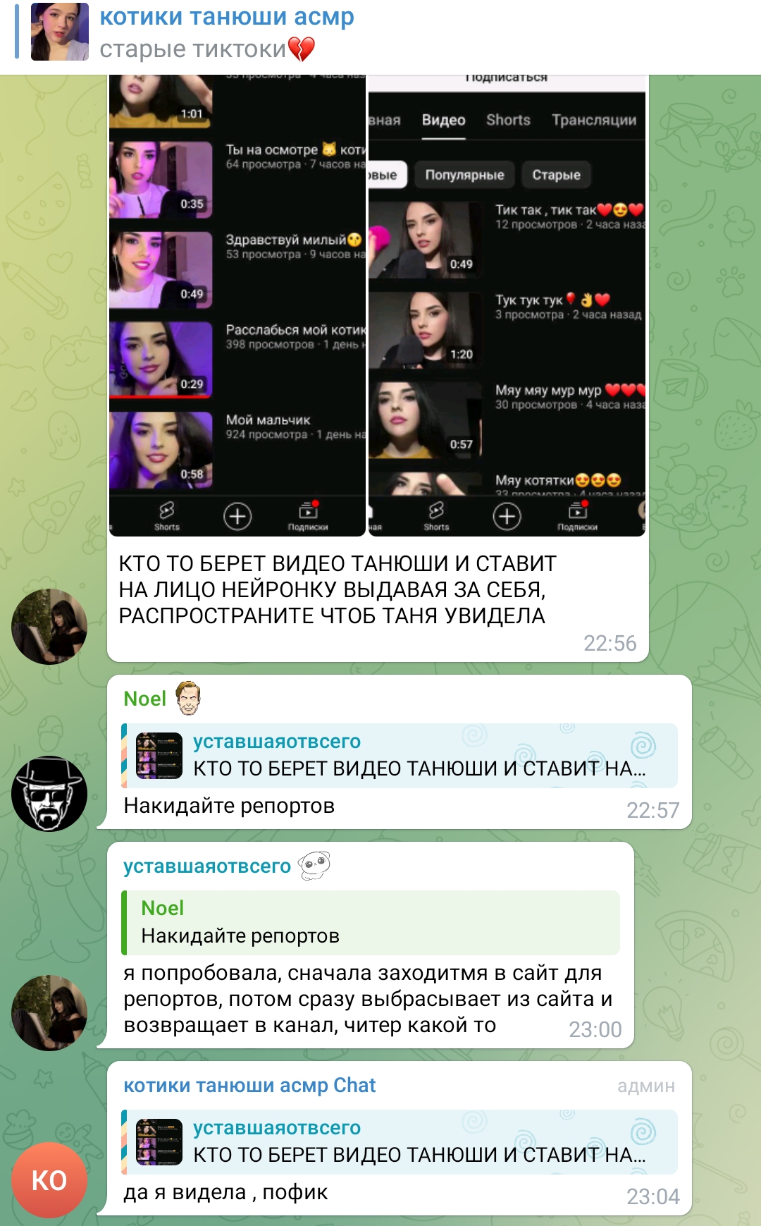 она читает двач. и он читает двач тоже. все уже благодаря мне прознли что она все банит за малешее не нарушение а выебоны любые, даже своего старого модератора, клоуна номера два который создал тоже о ней канал кнопка асмр и они короче ведут битву за таню ну или её ливственность точнее не зная что она уже не лиственница. вот такая история.