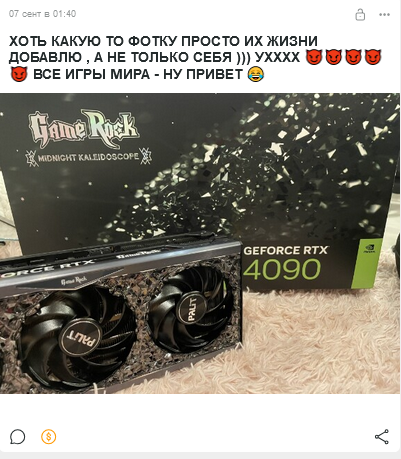 меня лично расмешило что она сейчас под конец поколения покупает оверпрайс говно, которое уже через полгода станет неактуальным мусором, которое просядет в цене я думаю минимум на 20-30% с выходом 50xx