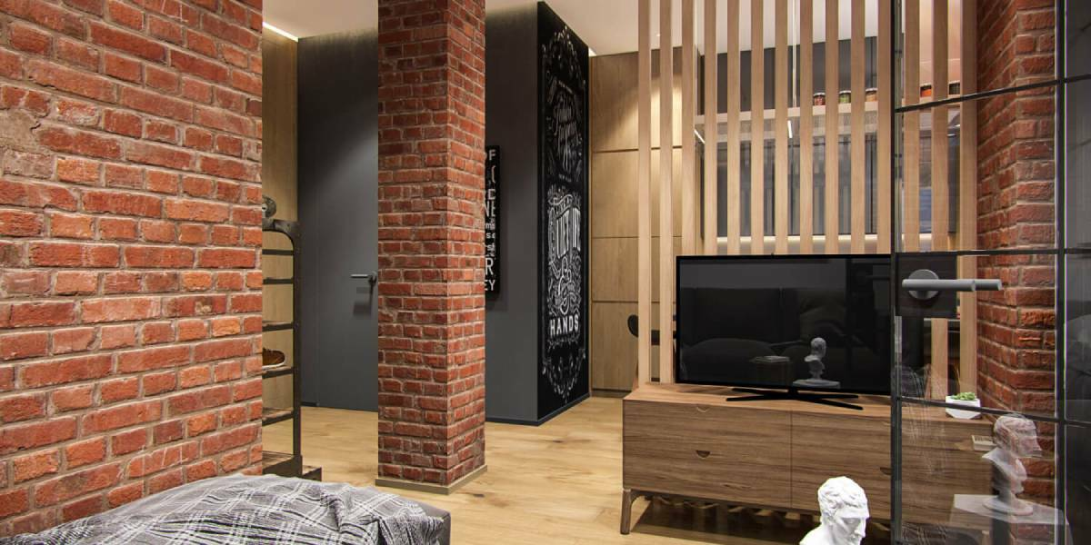 если на стене нет шпаклёвки и есть прям кирпичная кладка, её хорошо оставлять, потому что с хорошим полом это выглядит охуенно.