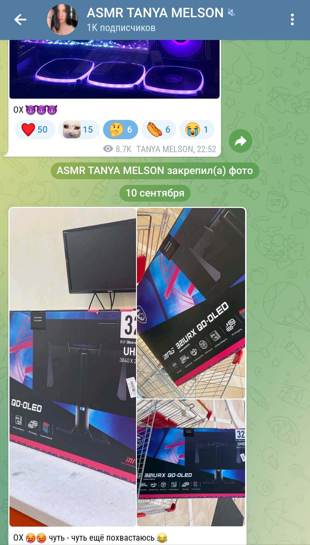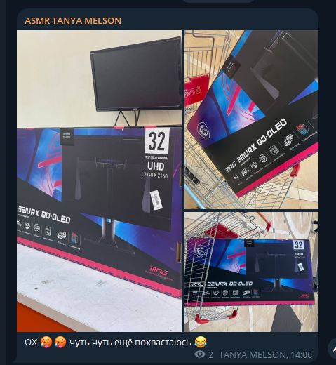 пусть хоть в кредит айфон 16 покупает завтра же сразу. меня лично заебало что она срывает всё и всирает реальную хуету и по контенту асмр и на бусти. баба - больна на голову. и становится страшно что вокруг люди есть кто этого вообще не понимает.