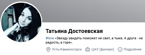 >>195631 да замужем она за моряком, она забывала нытьём тогда что любит солнышко и Питер, а приходится жить в Мурманске. не потому что ей хочется так, а потому что муж. только не понимаю смысл показа сисек, если больше ничего не делает. да и сиськи лишь фотками почти.