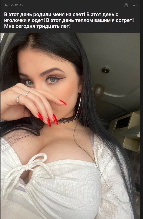 >>179757 можешь объяснить зачем ты это написал? она взрослый человек, замужем, у неё автомобильные права машина и покупает 4090 сама, вот просто поясни, почему ты считаешь что ей нужны какие-то советы, 15к и неебёт, а захотела 50к поставила. всё. вот мы охуеем, если там реально человек 10 у неё платников и стабильно 150к и реально кто покупают её отдельные посты. а раз она продолжает этим заниматься и исходя её старых донатов на стримах древних и она привыкла к суммам крупным как она сама ставши.