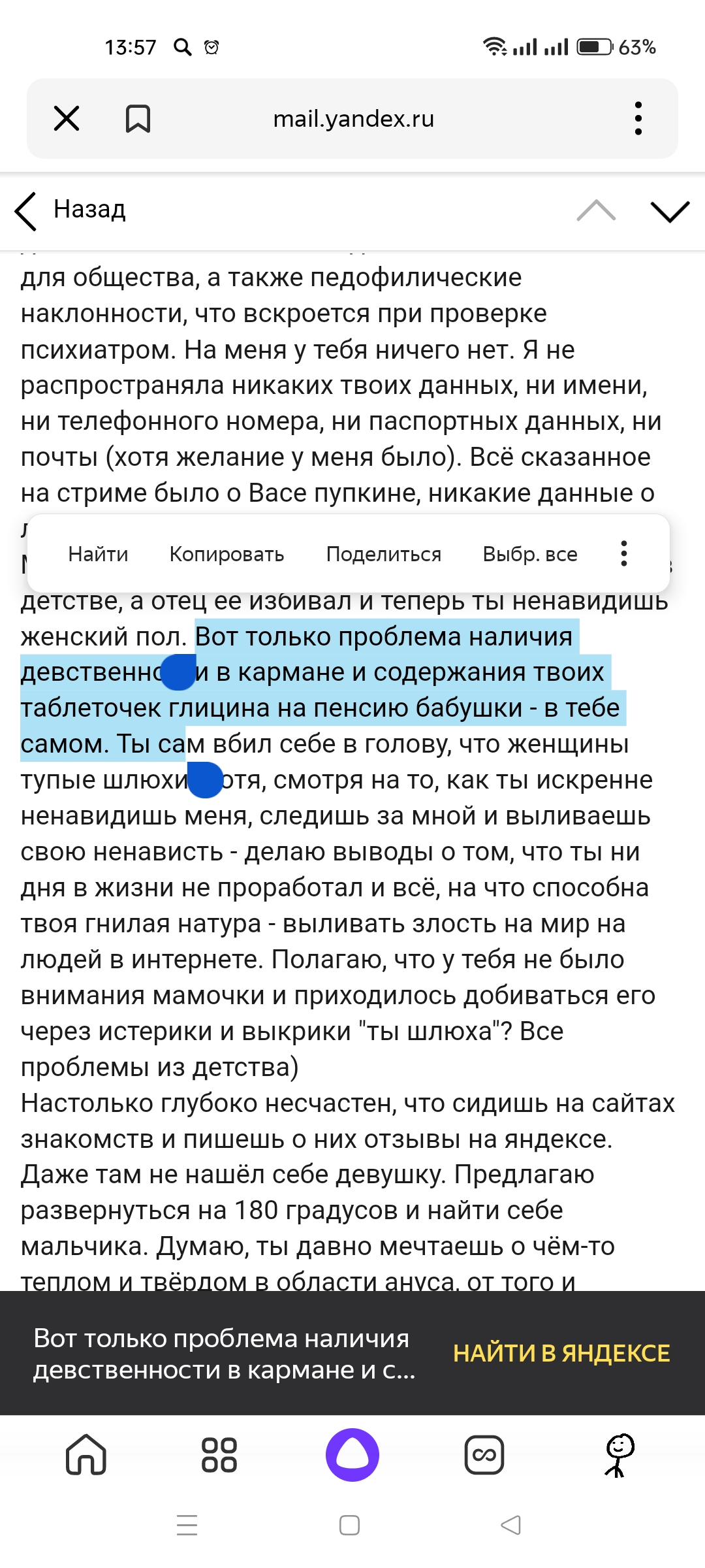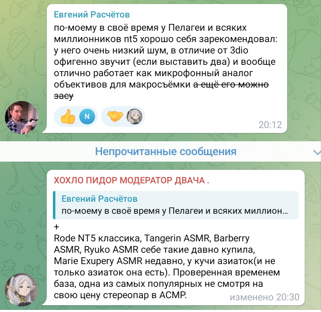 а этот пидор от твоего причём лица меня продолжает травить, обрати внимание на это. тот самый о котором мы оба поняли, он в скрине есть. который муне отвечает минута в минуту, я тебе скидывал.