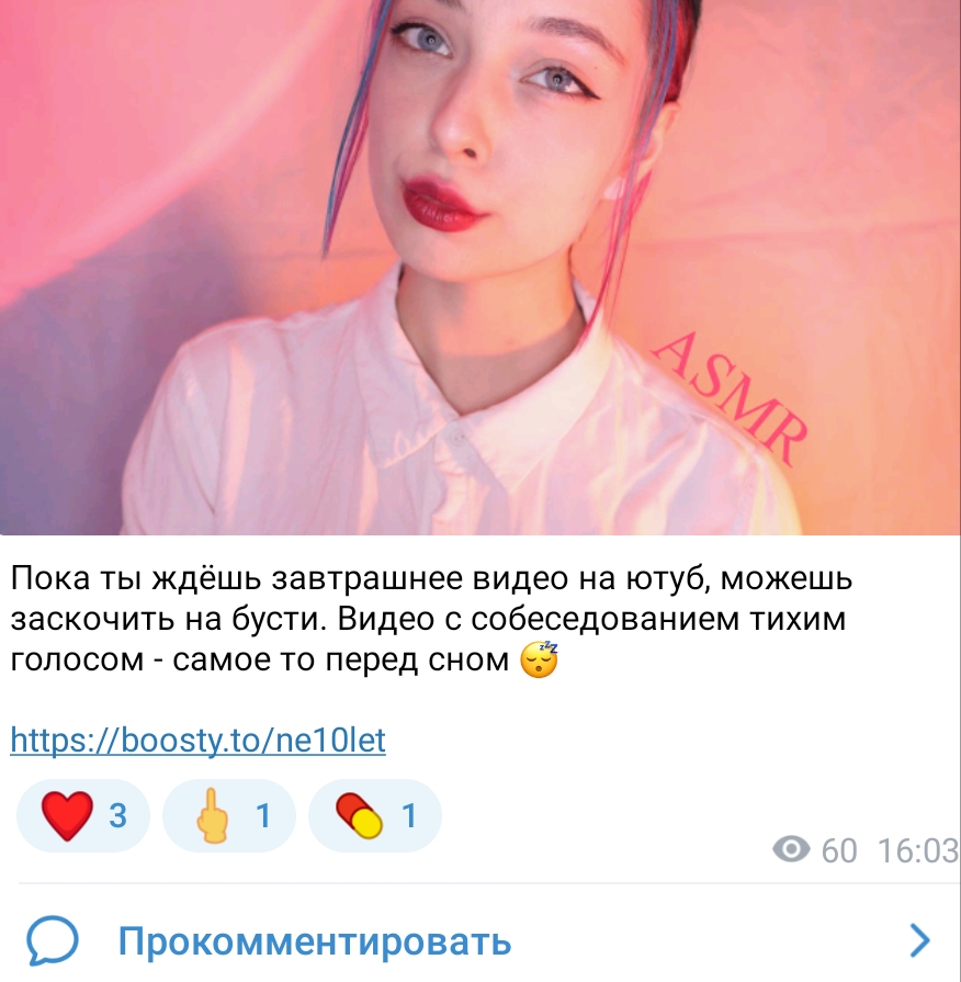 1. смысл писать ей комментарии - она не ответит (ей похуй) она сделает скриншот отправит Полине поржут вместе или может тебя в телеграм на растерзание донатеров педофилов анонимов опозорить им этим даунам еёным 2. чел, она замужем уже. она трахается сосёт и живёт с мужем. актив высосан из пальца.
