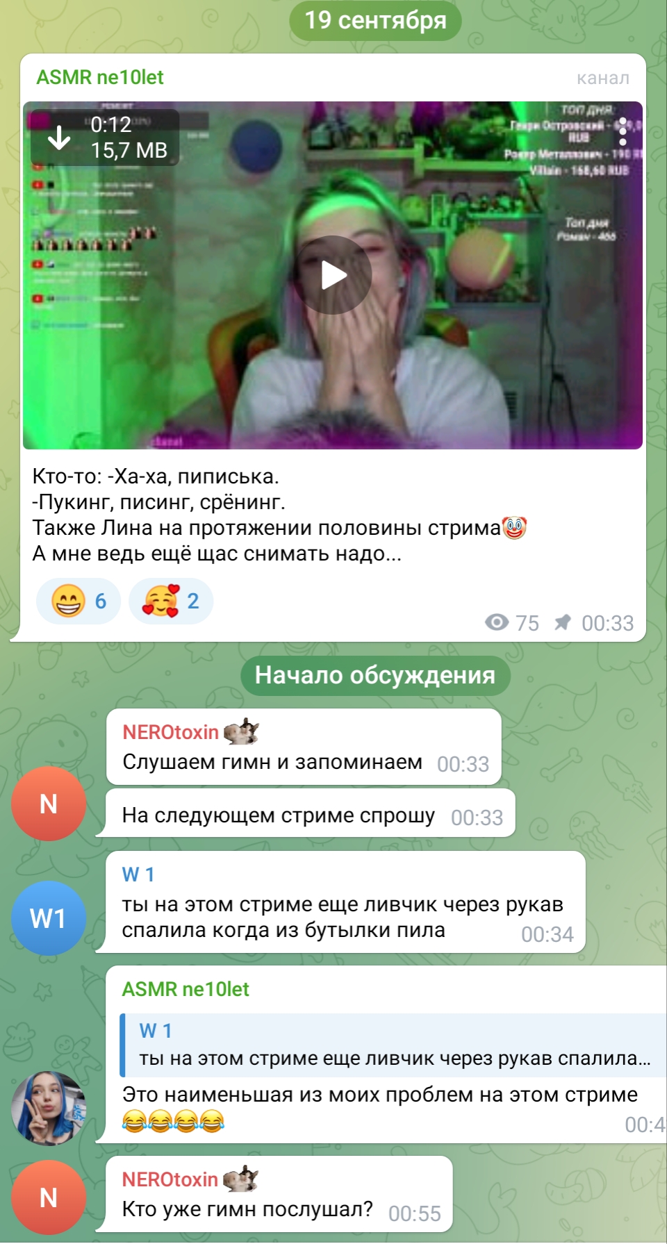 Тред картавой, харизматичной, синеволосой альтушки, гении мурашек и ролеплеев, матери русского матриархата - Лины! Играет в доту, мурчит в дискорде, стримит, пилит довольно ламповый и душевный АСМР и периодически заглядывает в тред.