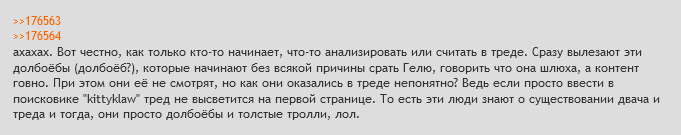 >думаете ктото читает вашу хуйню ? >мне не хуй делать но даже я не читаю ваши шизодиные обсуждения. реально как двое в палате будьто вы.