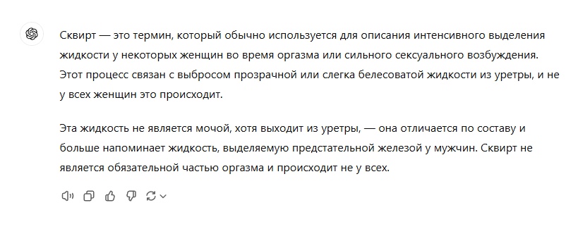 >>184275 Чел, эти статьи пишут либо бабы, которые никогда не сквиртили, либо долбоебы, которые знают о сексе только читая подобные статьи. А повторяют их диванные иксперты вроде тебя, которые тоже о сексе мало что знают. Я знаю что такое сквирт и пробовал его на вкус. Это не моча. Для начала узнай, что такое точка G у женщин и железы Скина.