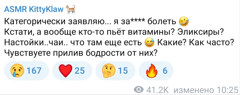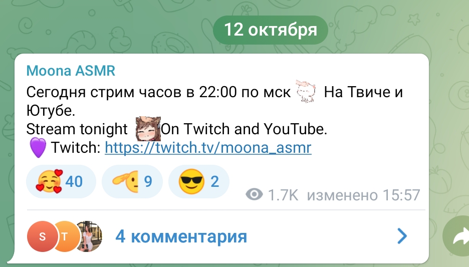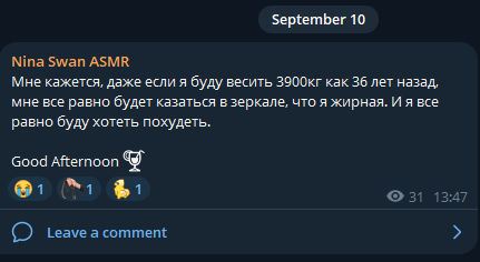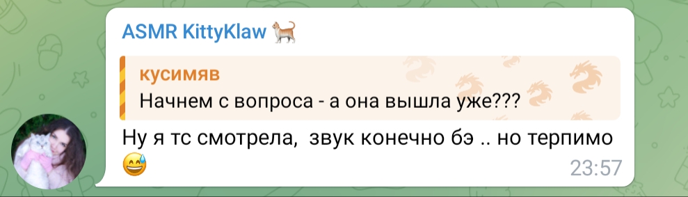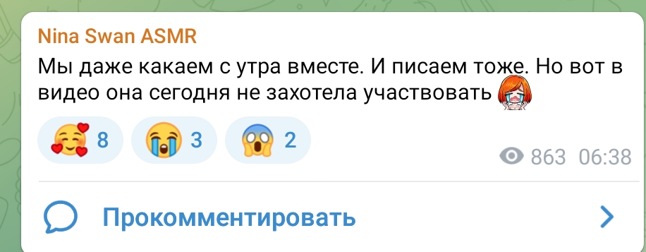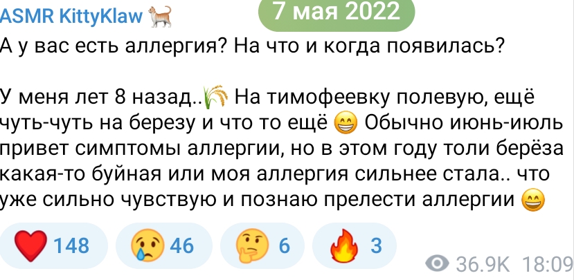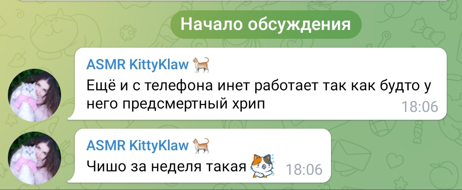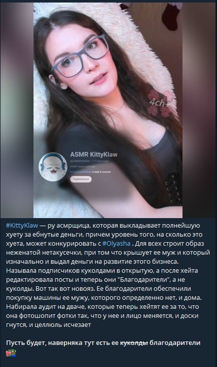 Все асмр двач треды мертвые, тг каналы мертвые, на стримах у шаболд никто не сидит. Вот так и помирают асмрщицы, а потом рвут волосы на жопе и кричат что все виноваты кроме неё самой.