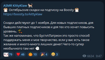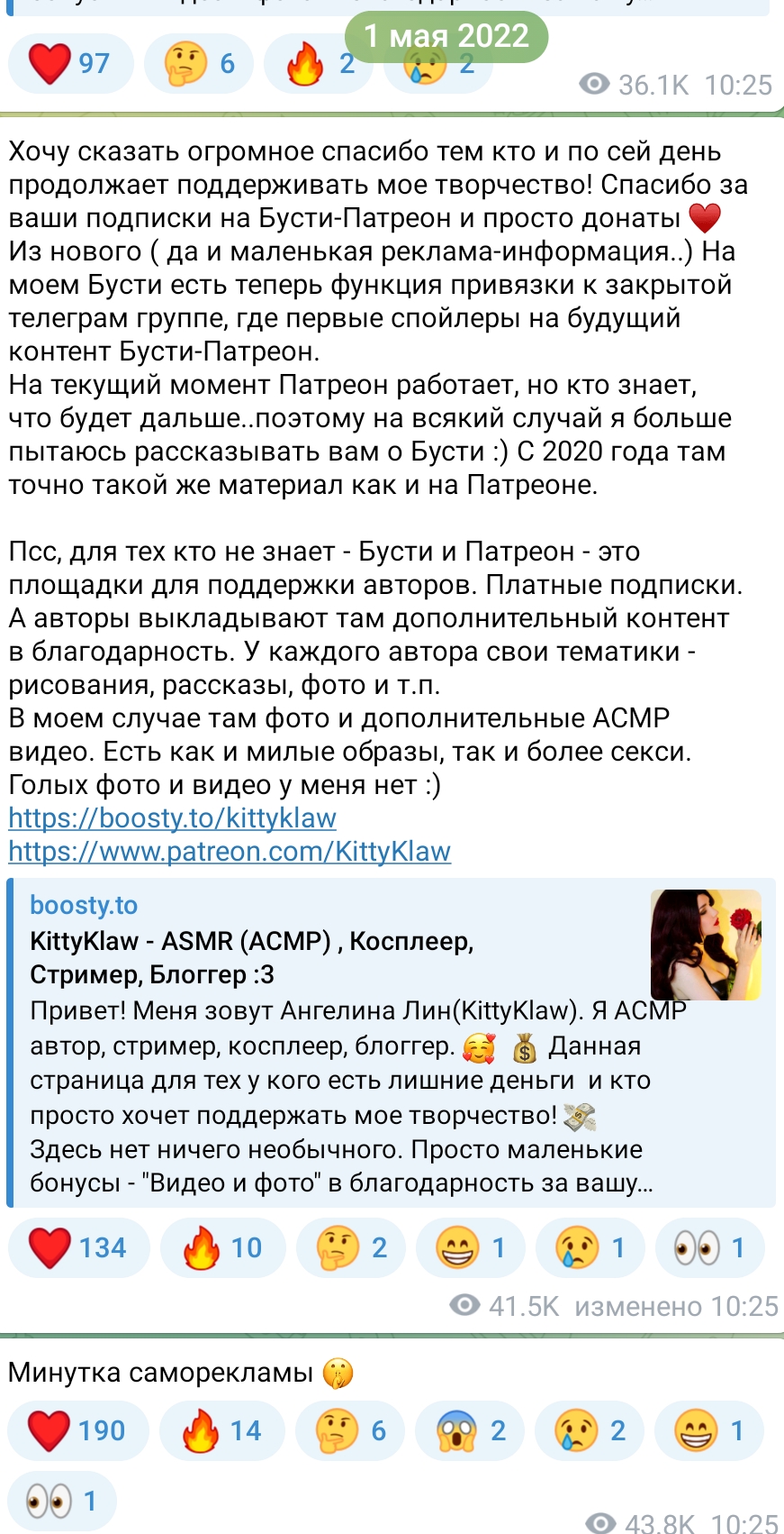 >>183380 Странно, что она этого не сделала ещё в начале года, когда всё было ещё печальнее. Кстати Гелька опять пиздит про "бусти, это только поддержка", как же она заебала... Если это только поддержка, нахуя там все эти уровни подписки? Нахуя там указано, что на таком-то уровне ты получаешь то-то то-то? Если это только поддержка, оставь два уровня с соответствующей надписью и не пости туда нихуя.