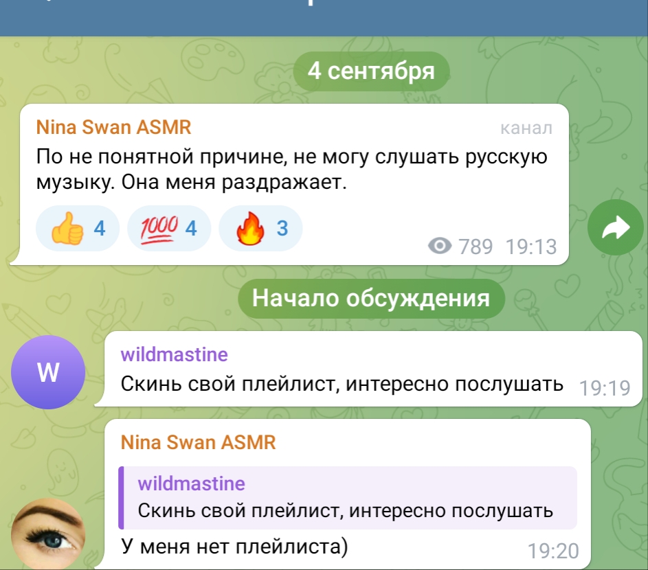 даже я зря тут Валерию в пример привёл, она вообще на русском контента не делает давно, её вычёркиваем, все крупные ру асмрщицы впали в спячку и это ебать как подозрительно