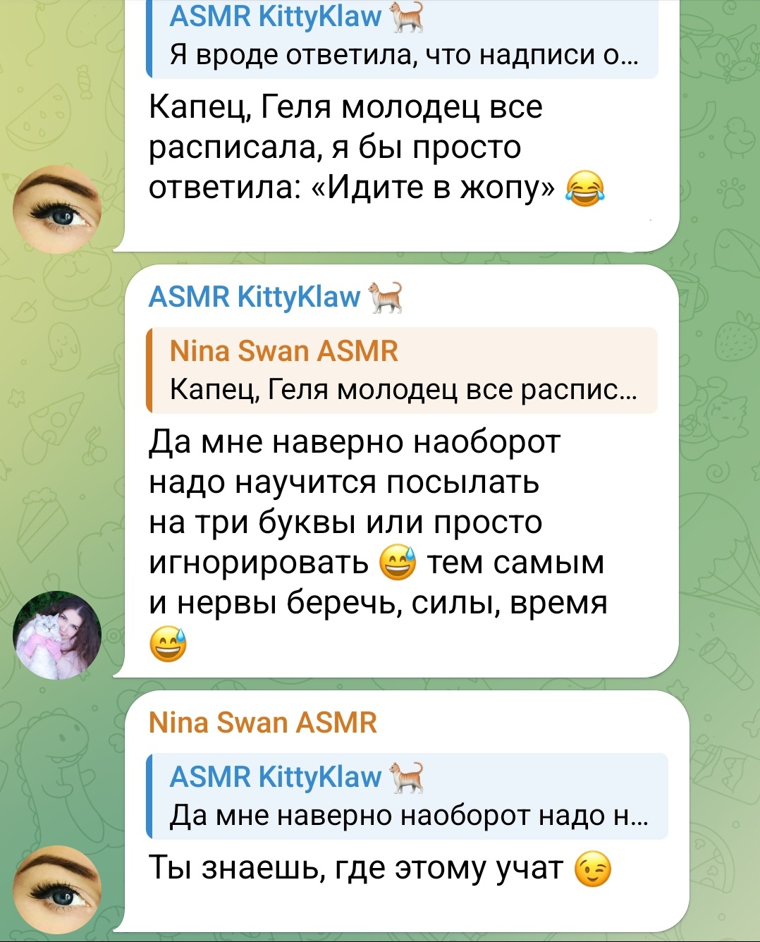 но баба сливает забавную инфу про остальных асмрщи в беседах комментариях.
