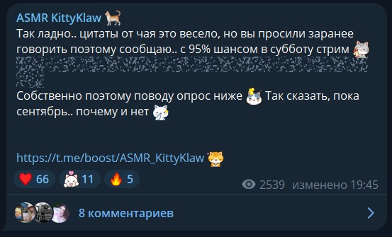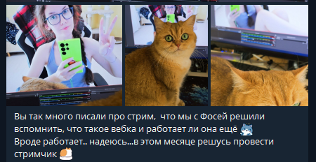 так что стримы теперь будут еженедельно. наверное сьебаться к нинке хочет. копит. будет на тесле в Америке кататься. две лесбухи помешанные на котах своих богачки.