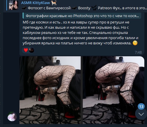 >>180048 ТЫ комменты почитай в тг. Там симпам похуй, они будут покупать и смотреть что угодно, им уже как-только пруфами в лицо не тыкали. Ну и кстати некторые фото ужасно замыленной кожей на груди или жопы. Обычно она выкладывает то что ей понравилось и получилось. Этот сет ей не зашёл и бы выложен только сейчас. Типо жрите объедки второсортные.