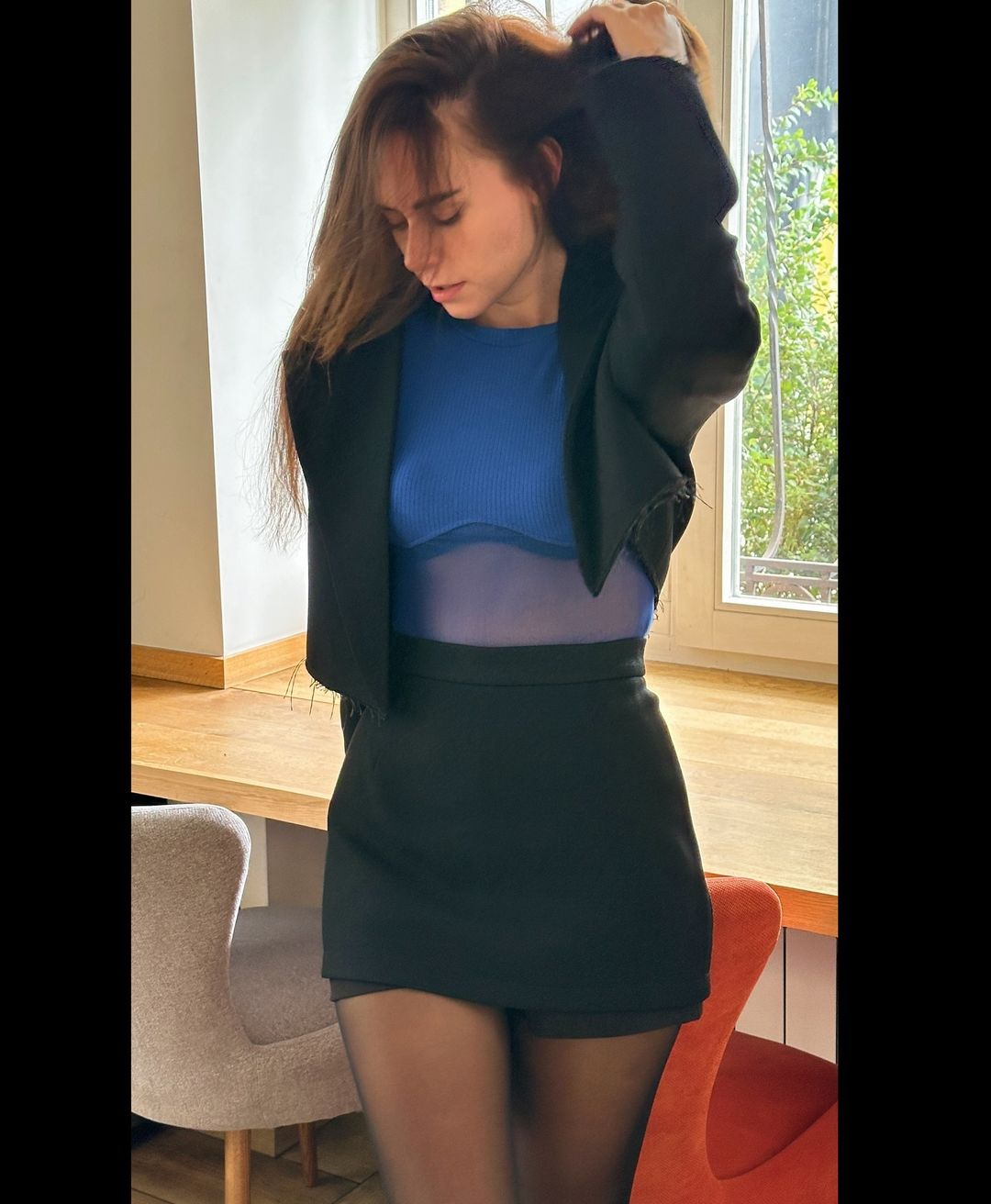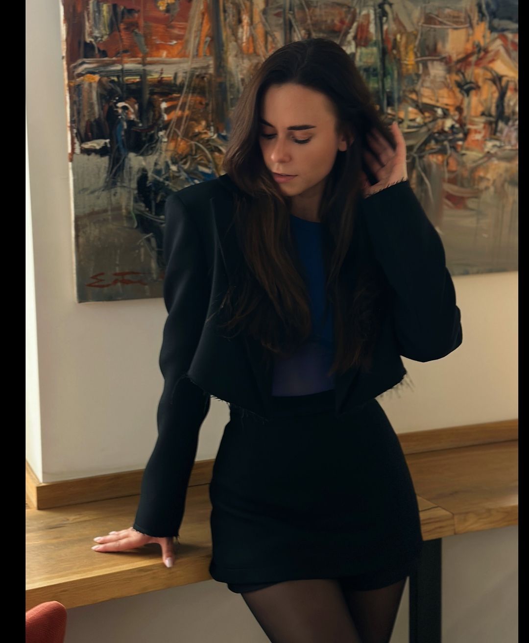 Лене идёт чёрный цвет, нагнуть бы её где нибудь в людном месте, задрать юбку, разорвать колготки и трахать сучку такую когда нас в любой момент могут застукать.