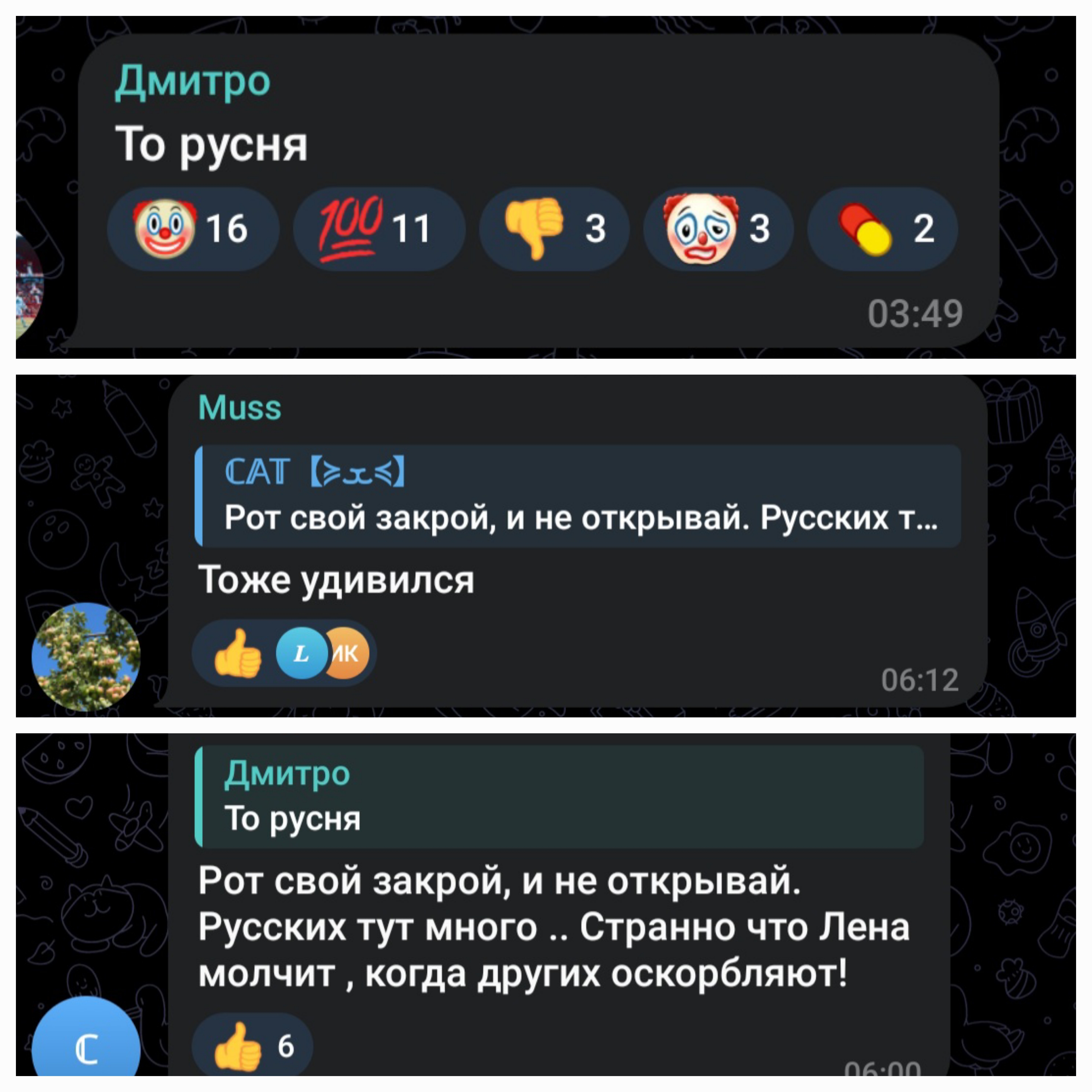 Не тебе панасюк кого то осуждать и негодовать. Забавно, как тебе ещё хватает наглости быть недовольной и ныть возмущаясь. Ты в тепле и не отпизжена чистимы бандеровцами или как у вас там.