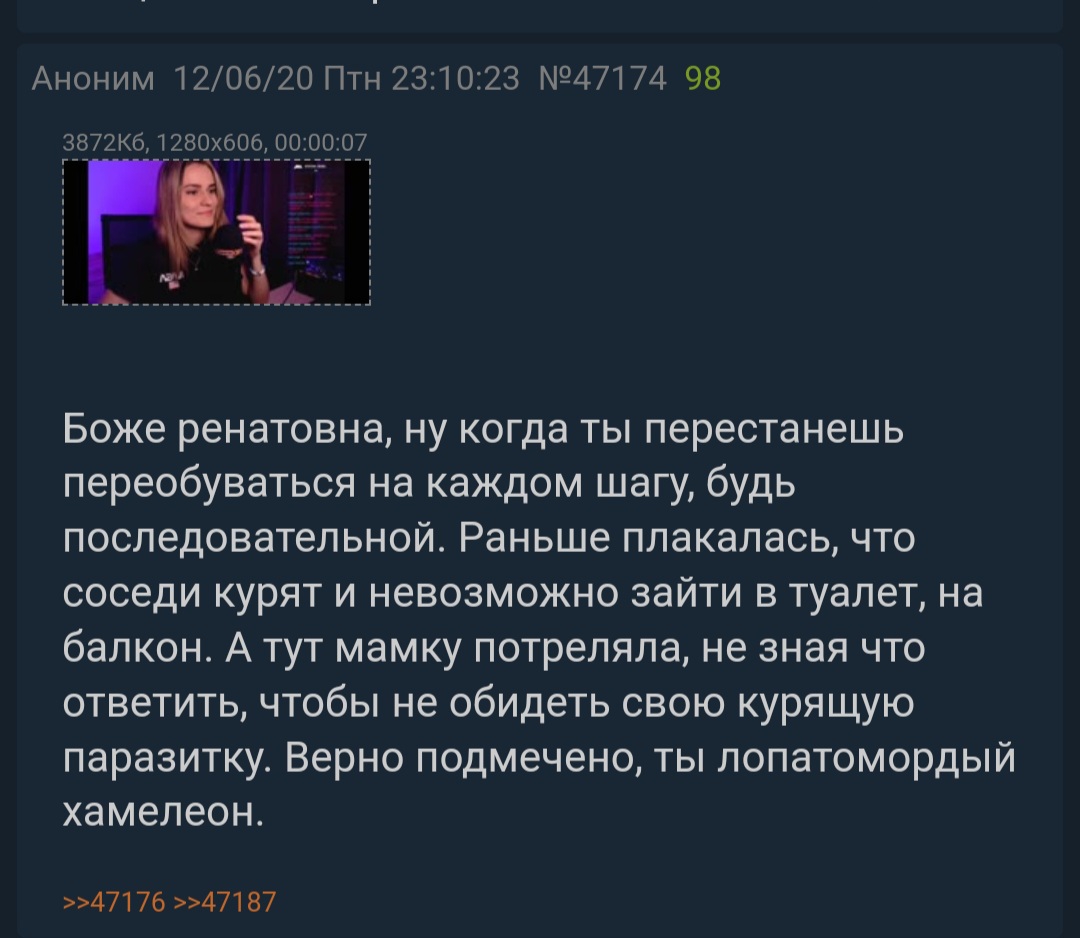 >>180779 Лай больше щенок, раз не умеешь с людьми нормально общаться. Если ты гей и как то ущемился, что пацанам нравится девчонка, то прости. А вообще насколько нужно быть тупым, чтобы искать асмр здесь? Тебе не хватает видео формата на ютубе или ты любишь асмр в тексте? И очень умно с твоей стороны, сидеть тут и называть Лену, хэкающей асмр богинькой, лицемерие зашкаливает.