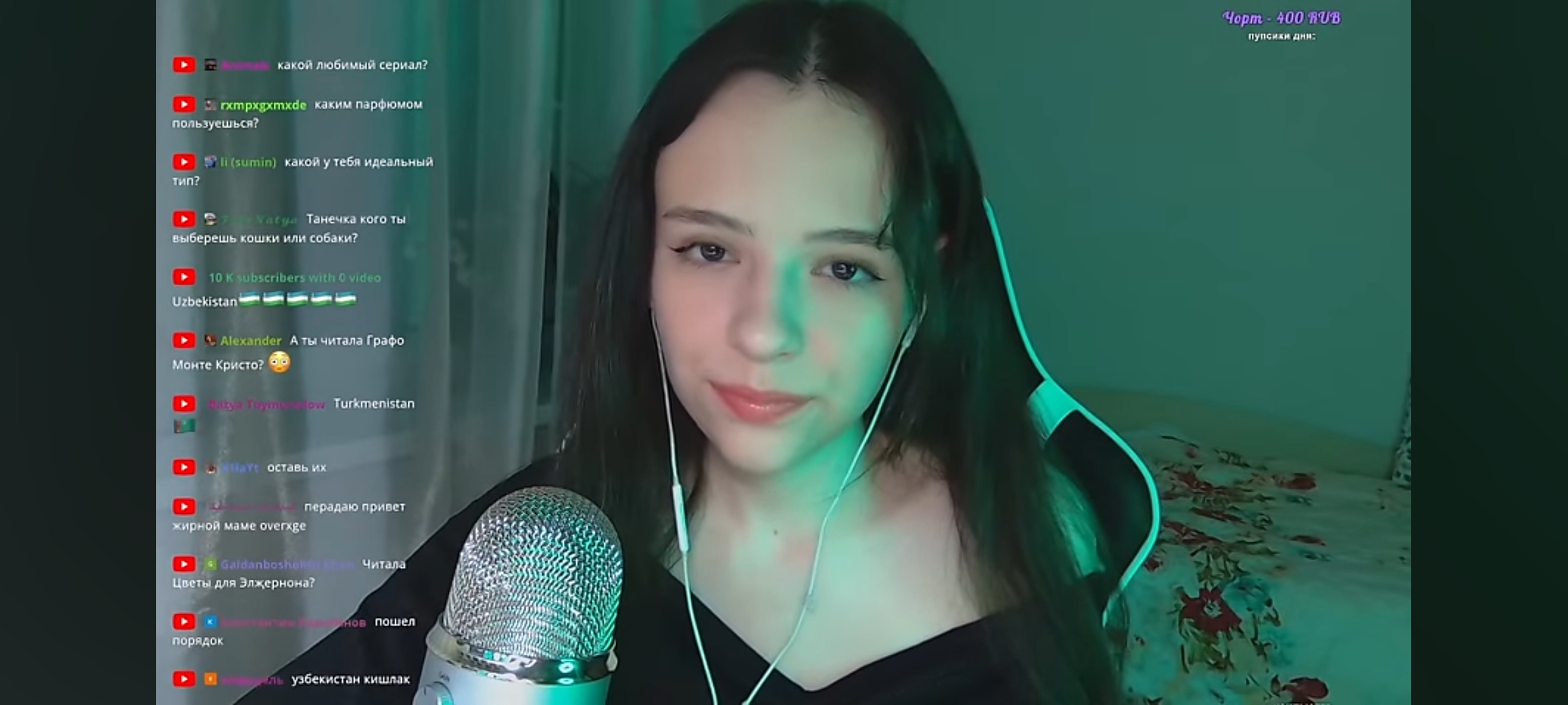 мало кто задумывался. но фишка сидеть а сзади кровать, это ведь не просто так. это на подсознание воздействовало, ведь стримы для сна проводились. она не игровой стример не видео блогер. скорее детский психолог с закосом ориентируясь под взрослых чтоб они себя ощущали детьми.