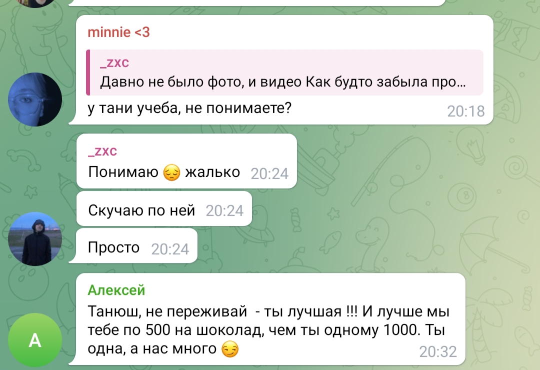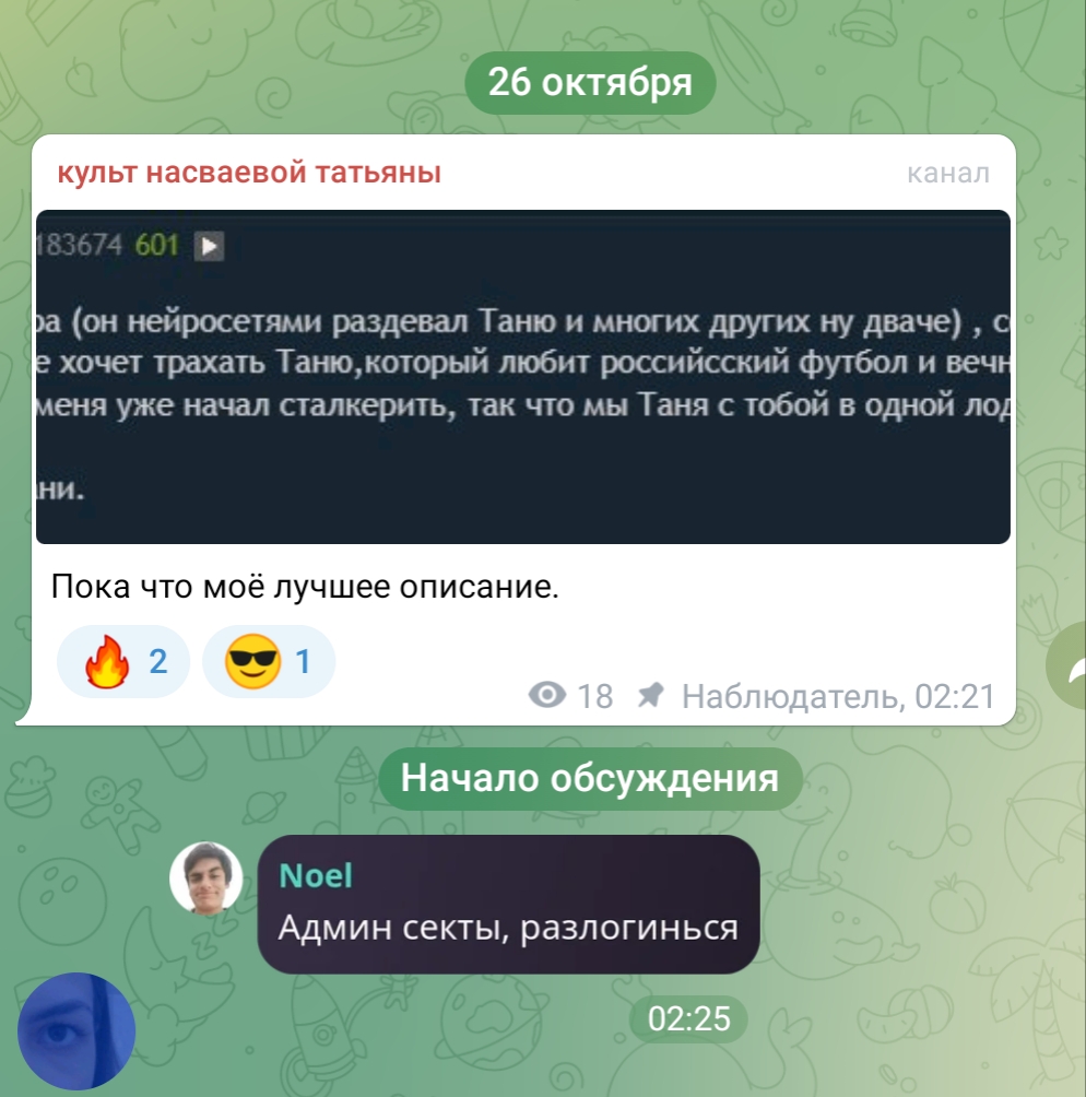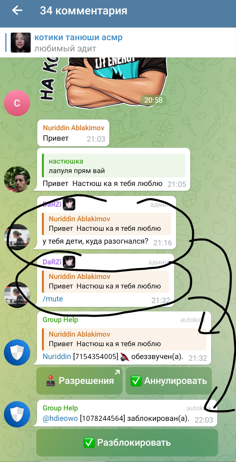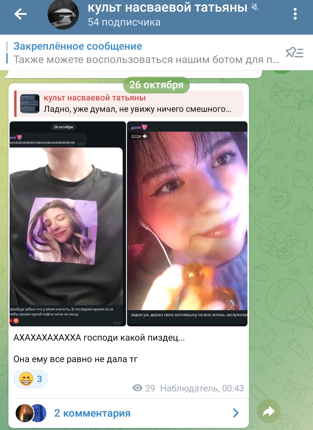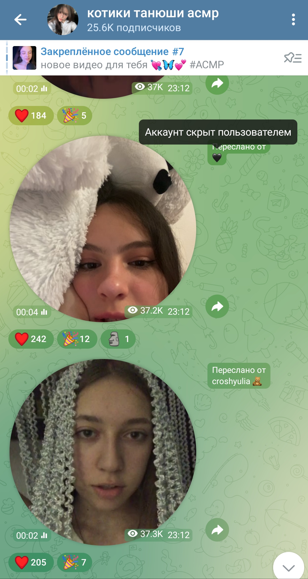 1. танин телеграм канал используется педофилами у которых дети есть 2. админ который видимо трахает Таню активно банит педофилов