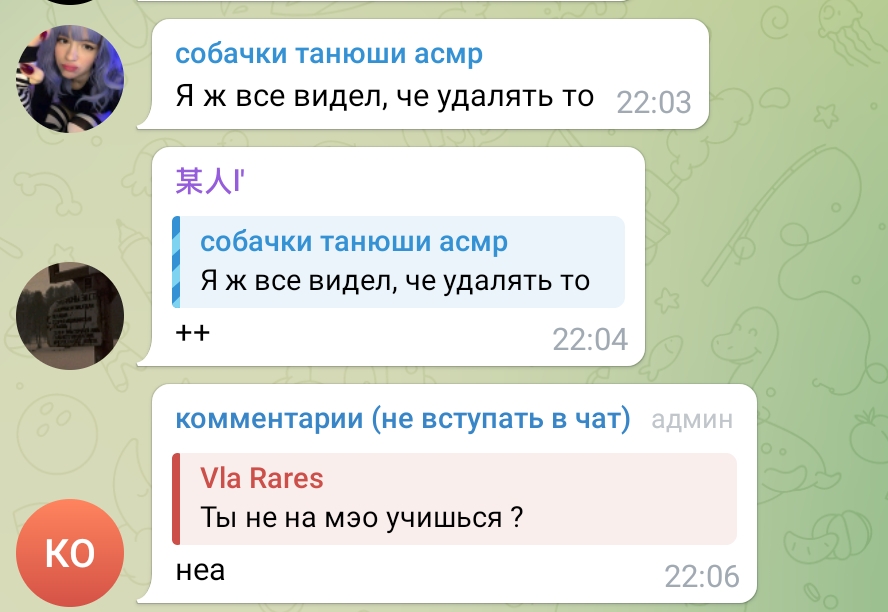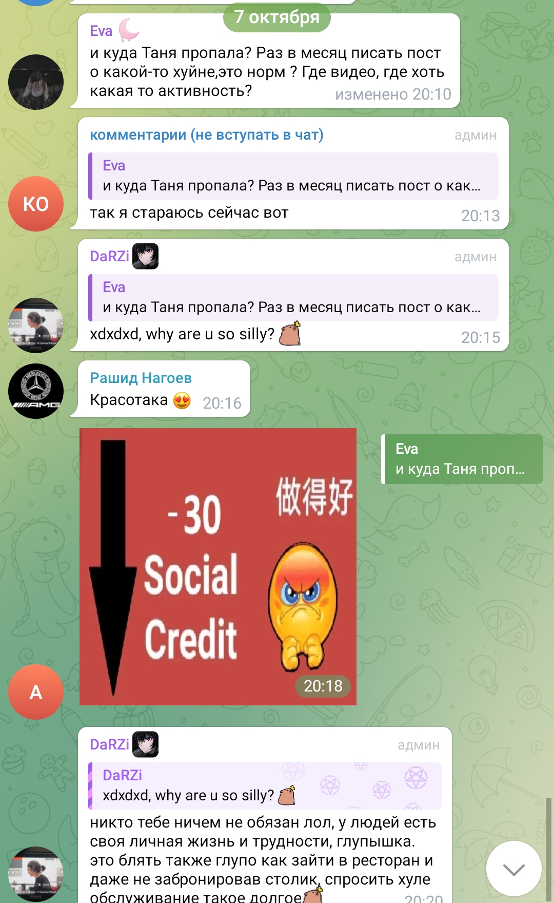 1. Таня спокойно ответила на агр девушкин 2. даня подлизал, он все слизывает. 3. админ обосрал (точнее он и трахает таню, надо же показать себя мужиком типо)