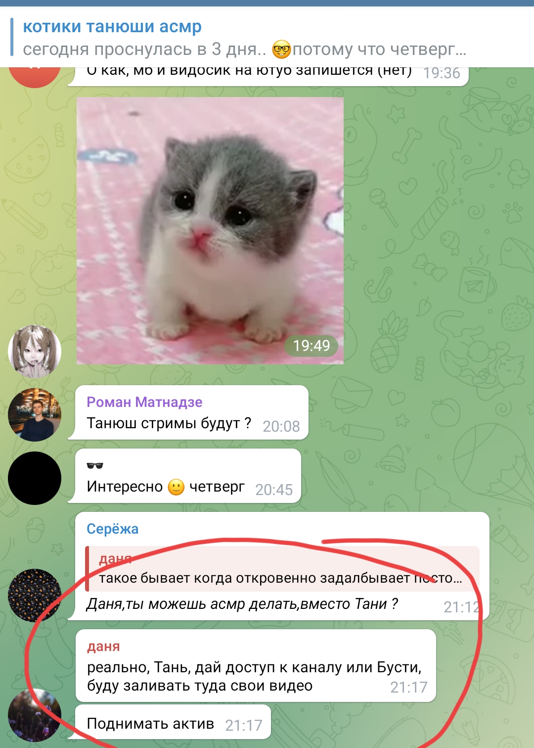 но повторюсь, я бы не стал ковыряться в канале её, хотя конечно переименовать канал хуй танюши и разослать всем что Таню сейчас трахают в прямой трансляции заманчиво бы звучало бы. веселье было мемным.