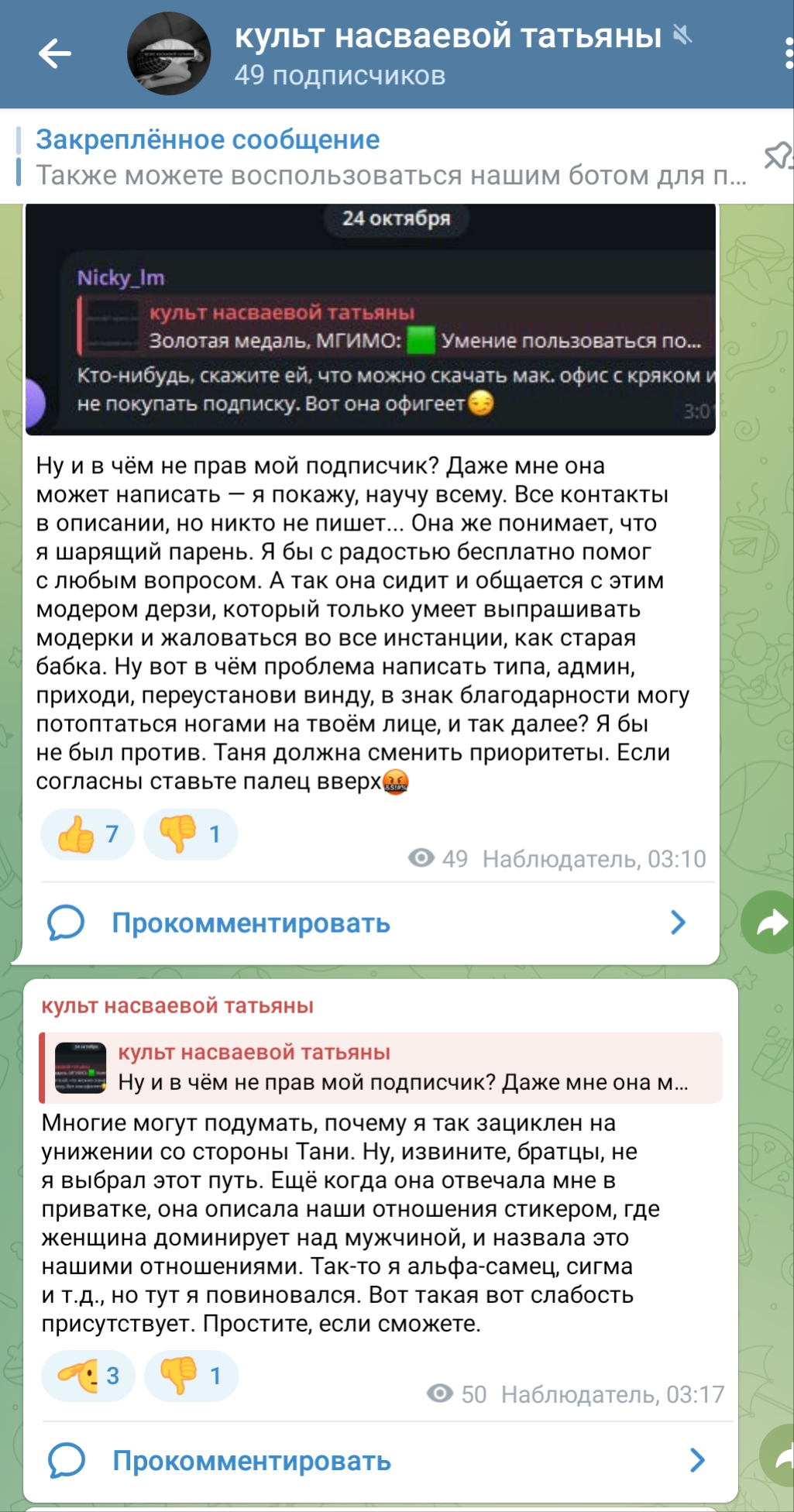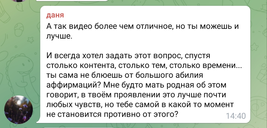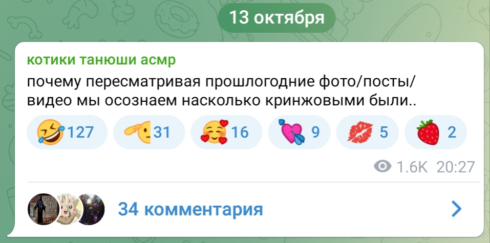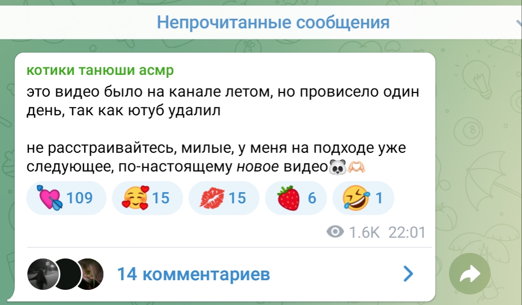 почему она больше после известных событий с создателем, перестала прём покупать и сразу же резко начались отписки. как это связано но видимо связано. и почему не развивает телегу. ну оформление. платные посты. ей деньги получается не нужны совсем что ли. или реально некогда. странная всё таки Таня наша.