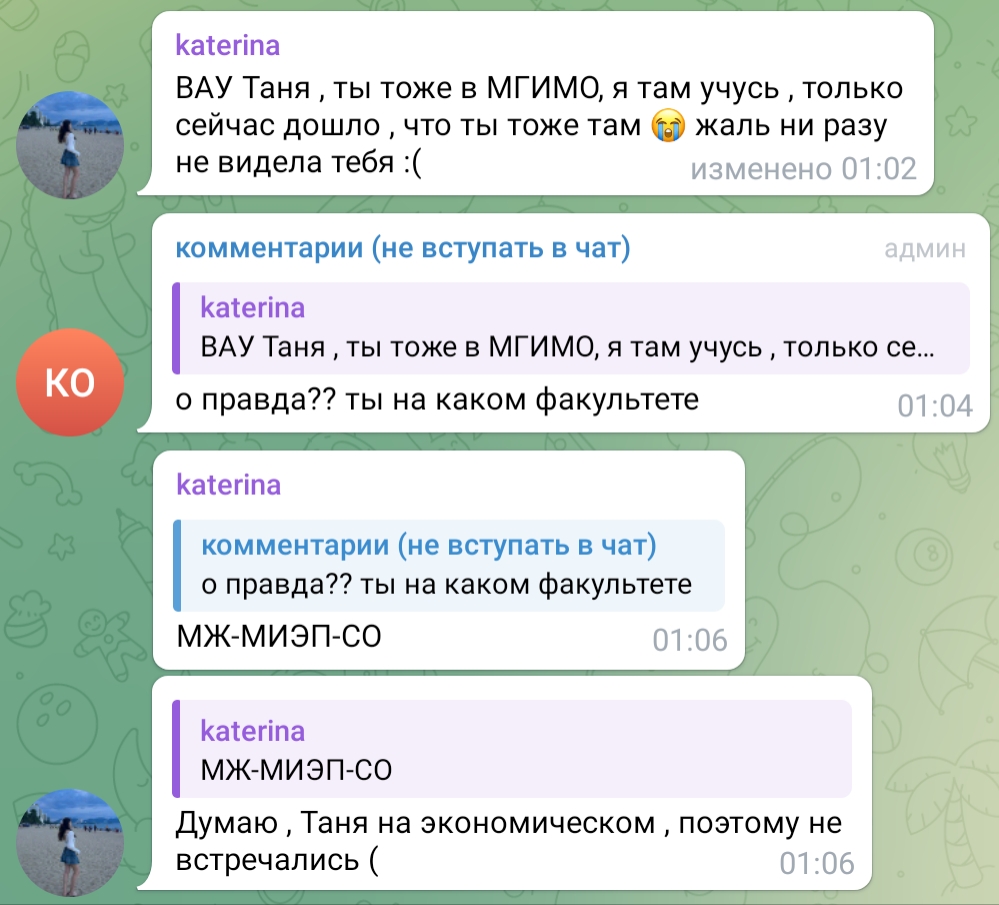 а в этом мгимо там половина мажоры или блогеры и Таня там не особо выделяется, поэтому мы не будем наблюдать никаких сливов про Таню московских. полагаю как-то вот так.