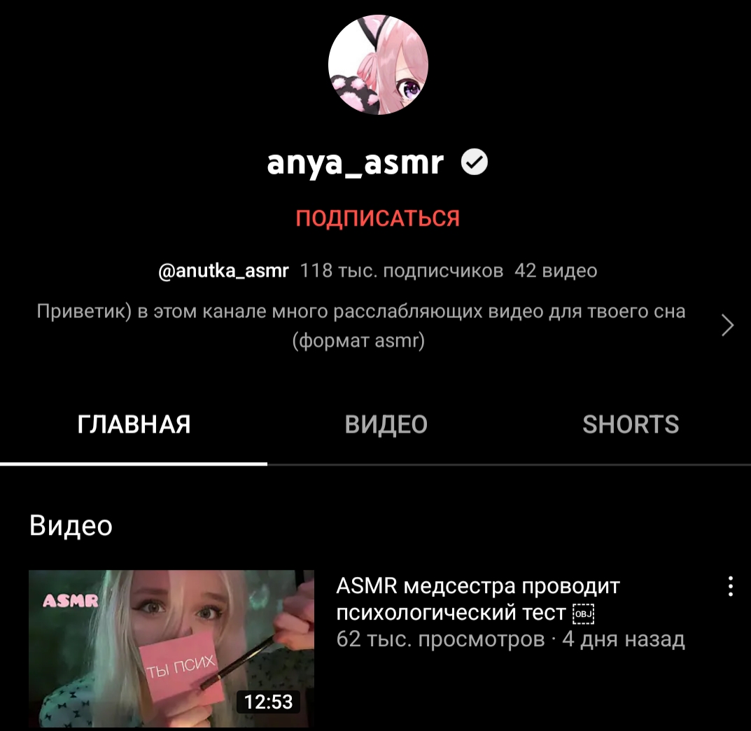 можно капнуть ещё глубже. даня этот смотрел асмр с детства? или узнал про Таню когда у неё начали расти сиськи и она получила кнопку уже. и почему он не ищет себе девку.