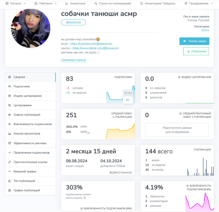 особенно ржачно что половина этих девочек стараются быть как Таня, ведут канал или мечтают о её славе. или сами же ищут папика. и Таня как бы кнопку заработала на педофилах по сути и в 16 сиськи показывала на том стриме хотя бы с дня рождения. отражение статистики телеграма идентична ютубу скорее всего. 70 процентов мужики.
