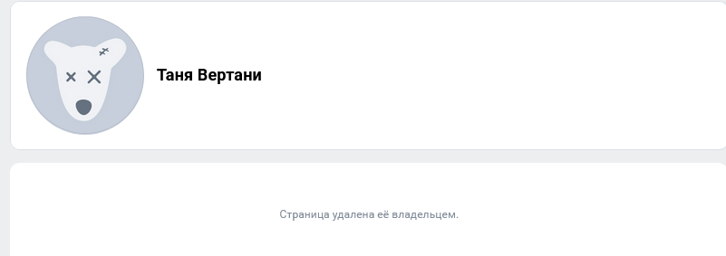 >>186701 блять чо я туплю то ещё спорю зачем-то. ты видимо не в курсе что в вк агенты тех поддержки существуют. там они настолько суровые, что малейшая просьба их с пруфами, все снесут подчистую. если бы Таню что-то не устраивало, она б давно б кинула жалобу на эту страницу. значит страница всё таки её.