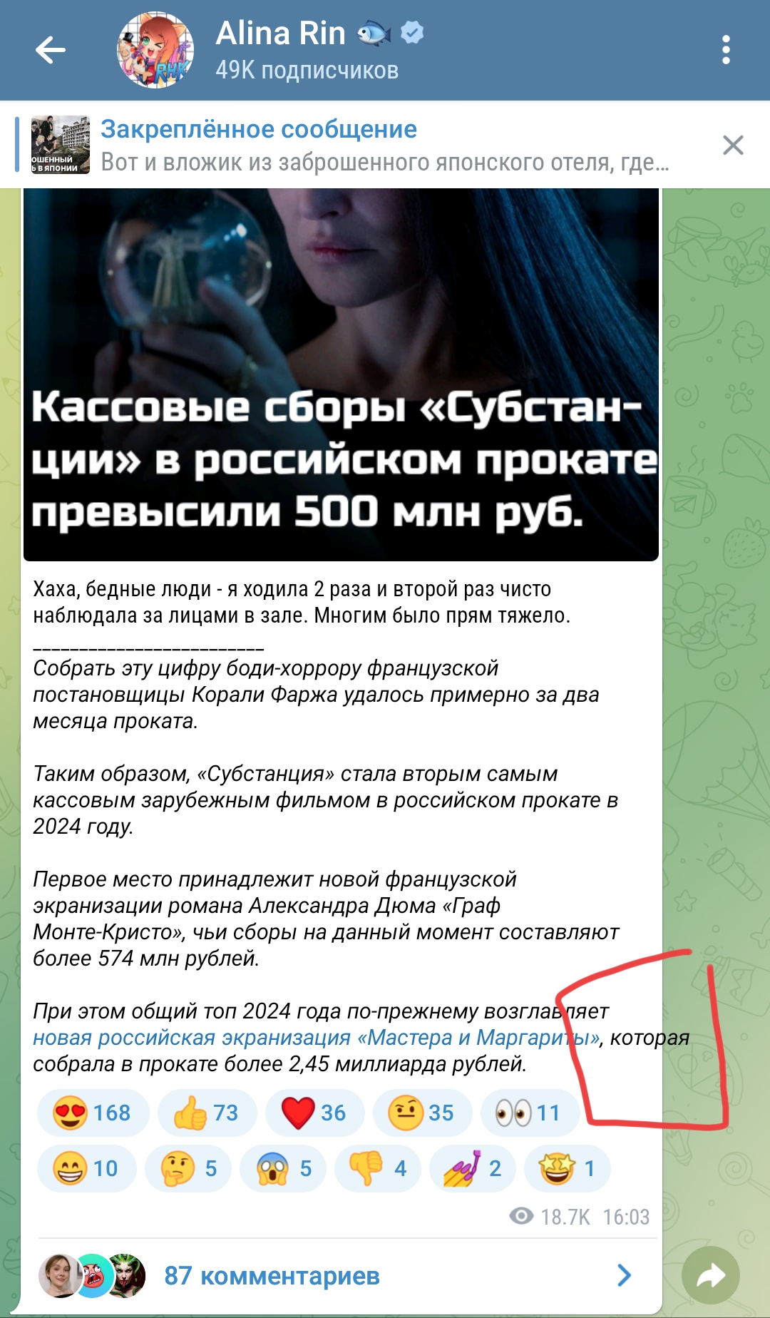 но самое смешное что даже на какой-то хуй пойми страницу у неё актив просмотров недлсягаемый какой-то для просто девок. прям магнит у Тани где-то.