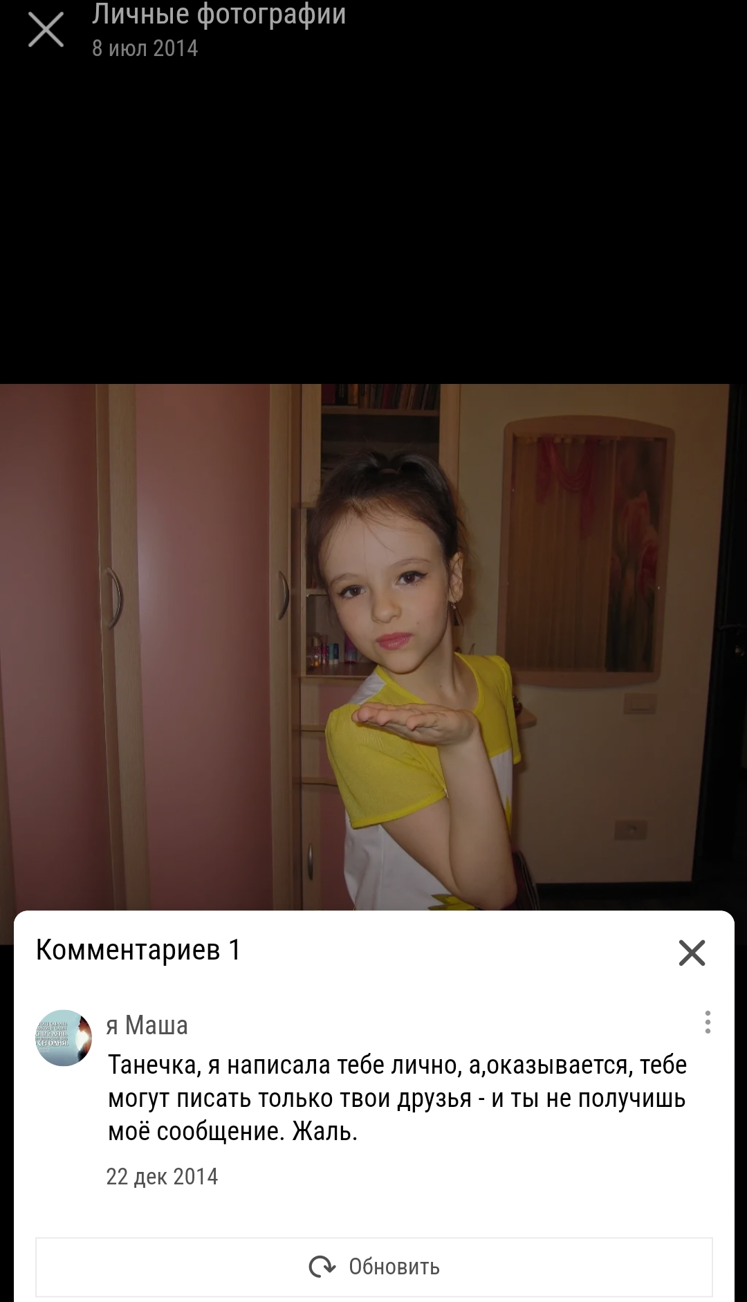 увы но уе скрыто. а скринов ты рне сделала видимо. блять и что там ? накаченные губы и сиськи 5 размера да? иди наоборот всё совершенно... ну вот никогда теперь не узнаю. а мать дочек - это отражение дочерей через лет 10-20.