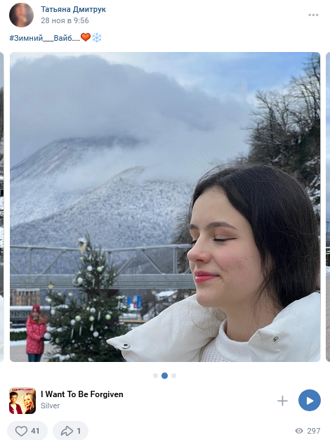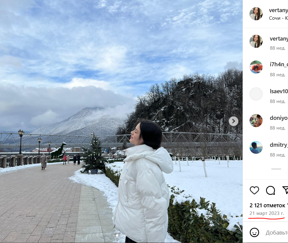 >>186622 По поводу первой фотографии ничего сказать не могу. Однако, как я выяснил, вторая фотография, где она в куртке, была сделана во время её лыжного отдыха в начале 2024-го года. Может быть она просто вспоминает былые деньки