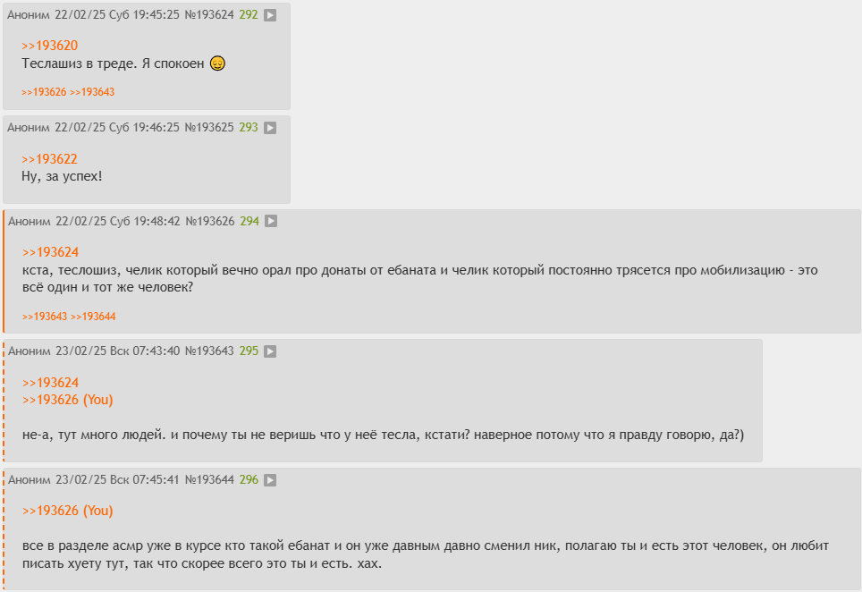 все в разделе асмр уже в курсе кто такой ебанат и он уже давным давно сменил ник, полагаю ты и есть этот человек, он любит писать хуету тут, так что скорее всего это ты и есть. хах.