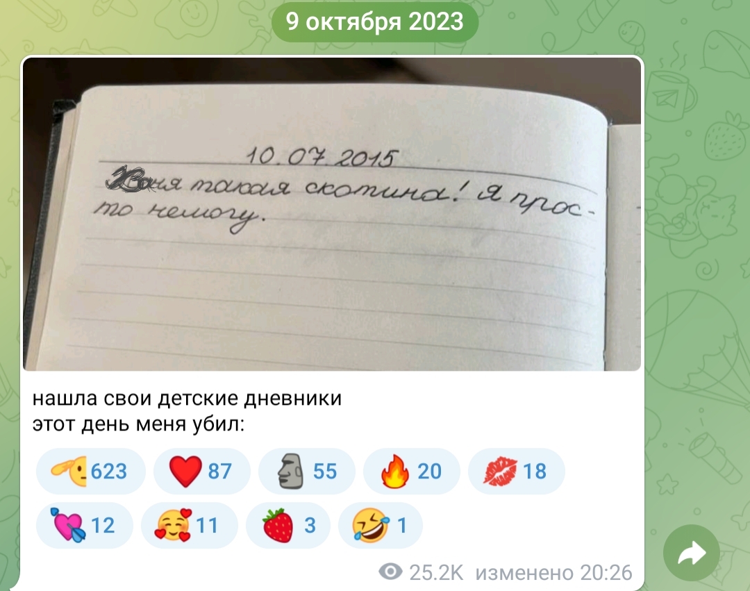 2. у нее статус про любовь в телеге личке. у него что он любит её в ютубе.