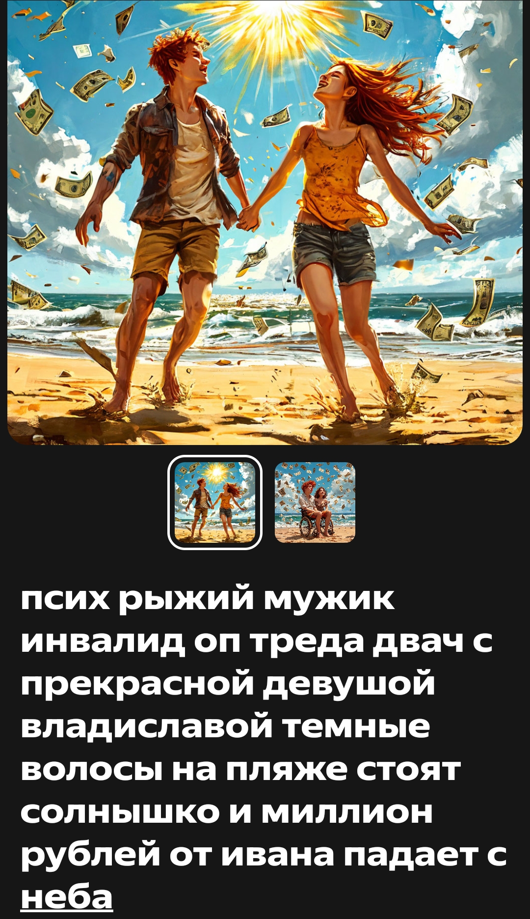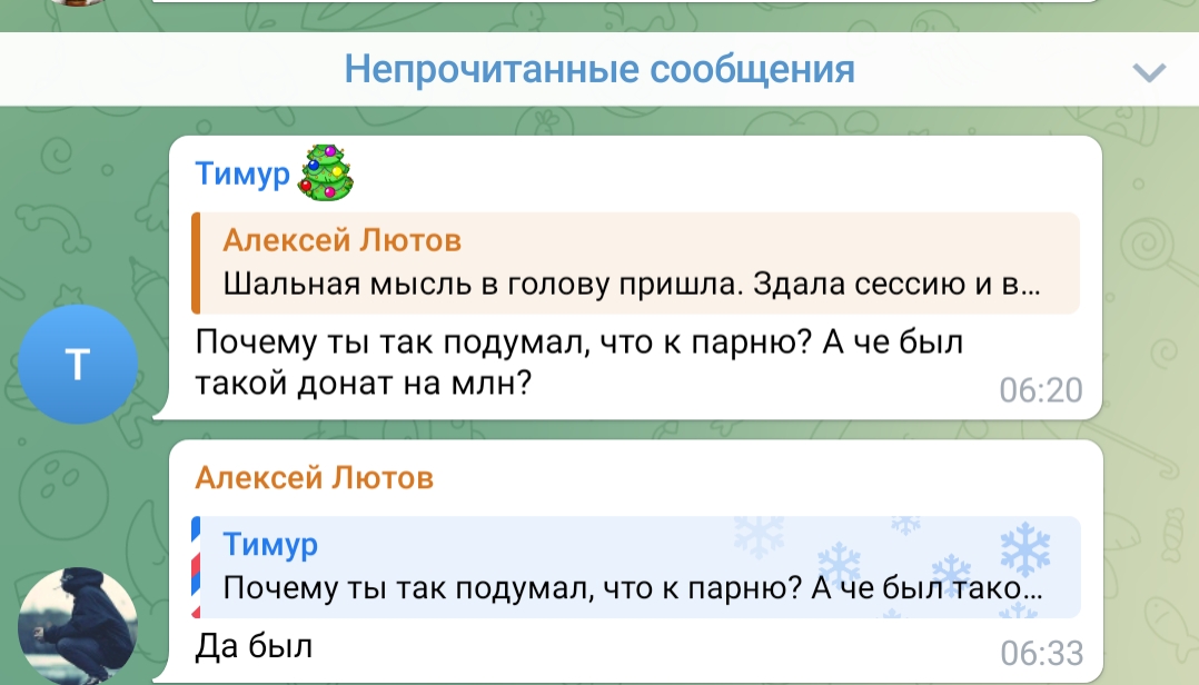 Ваня скинь мне всю свою галерею в личку. Я всё солью сюда. Просто нечестно. Ты хранишь мои фотографии у себя с ней. А у меня до сих пор ваших совместных фоток нет. Могу быть свидетелем на вашей свадьбе кстати. И я уже соскучился по твоим сообщениям в личку мне. Хочу теперь не голосовые а кружки.