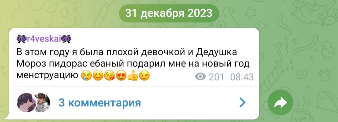 (делаю вид что она аткая читает всё это, какогото опа треда который хуй знает откуда взялся вообще)))) да я и не обижаюсь. меня ваня больше всех обидел в декабре под новый год поздравил заебись.