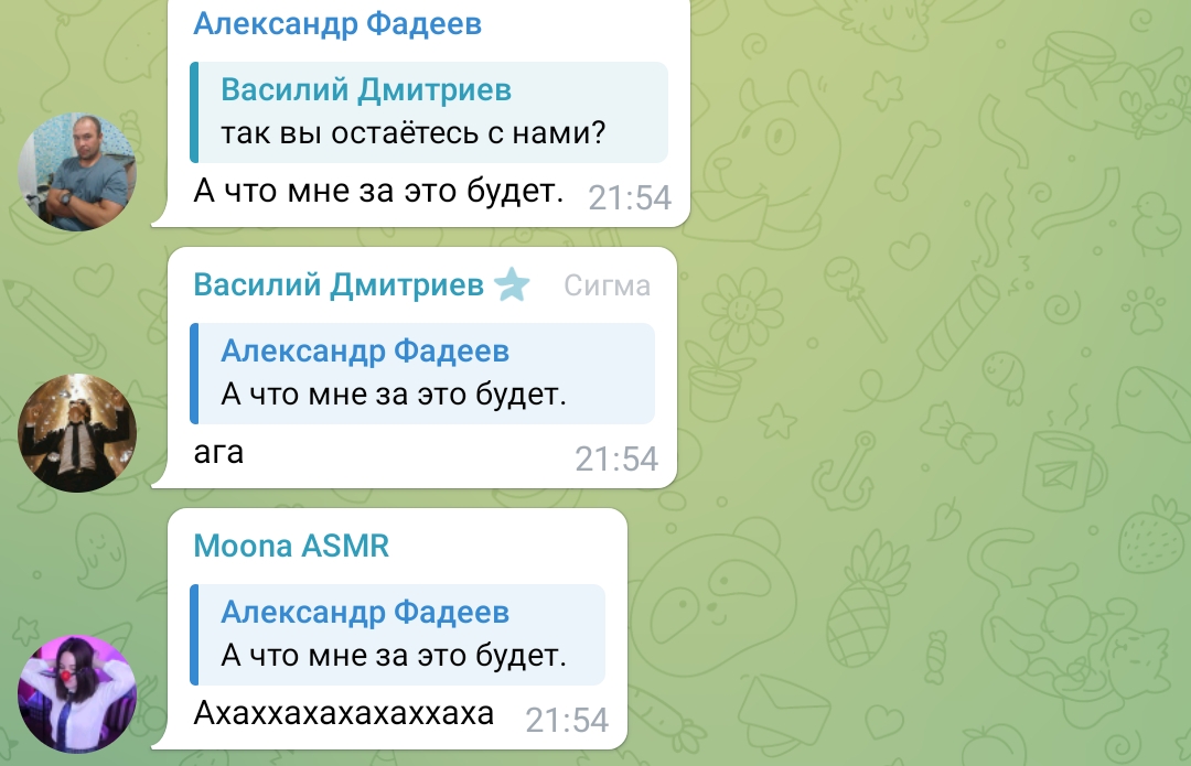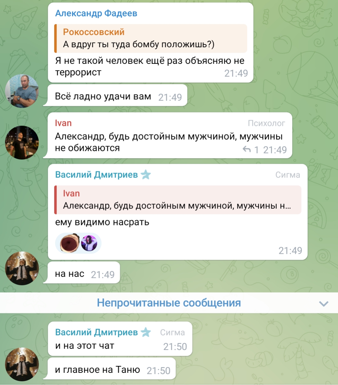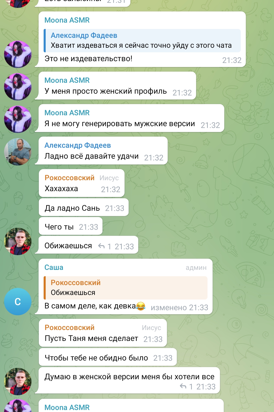 >>191960 Причем тут скуф? Ты выложил скрины, которые тебе удобны, будто Муна исчадие ада. А если просмотреть диалог полностью, то картинка складывается другая. Человеку плохо, он не на весь телеграм, а в чате на 3,5 человека поделился плохим состоянием и сказал, что деньги это не самое главное, если ты болеешь. В чем она не права? У тебя нет эмпатии, а знаешь почему? Потому что ты бы сам хотел чтобы тебя кто-то послушал, сказал доброе слово. Но никого рядом нет, ты никому не нужен, вот и завидуешь.
