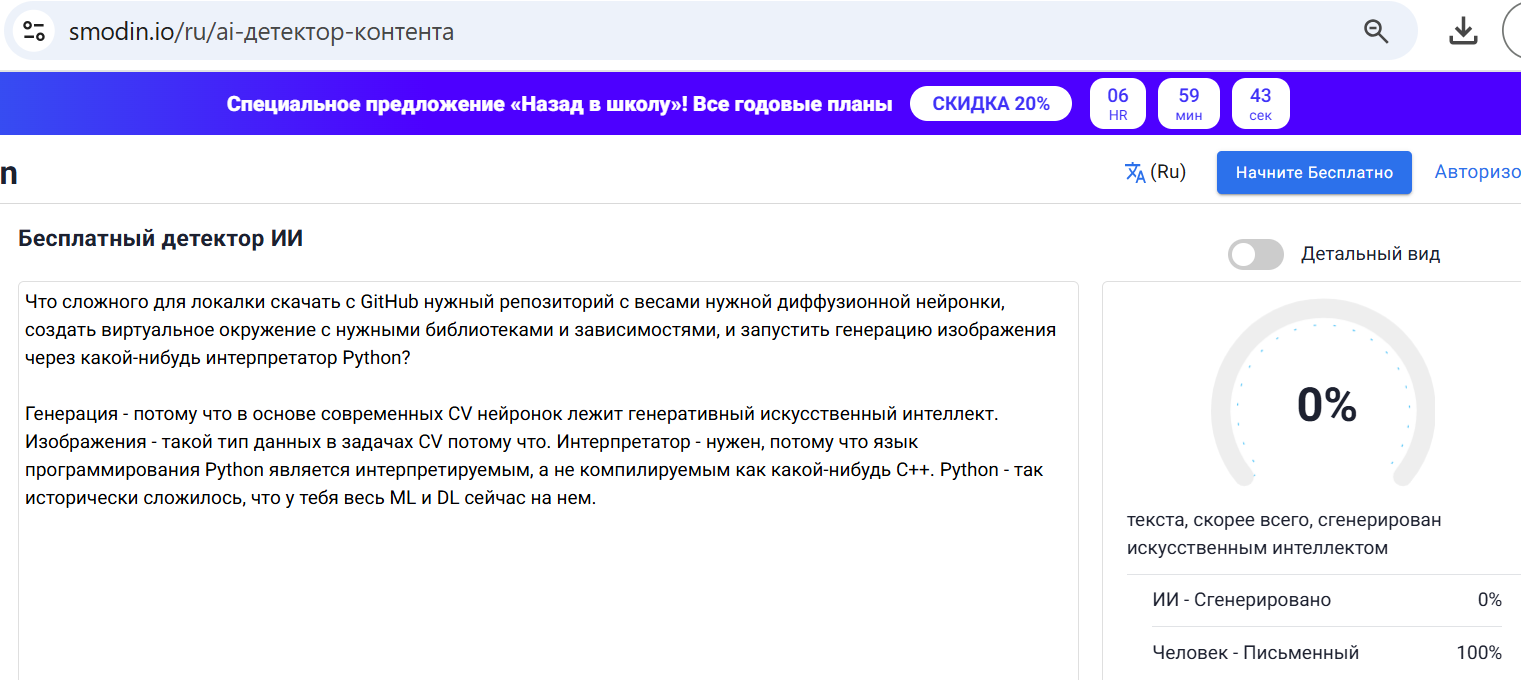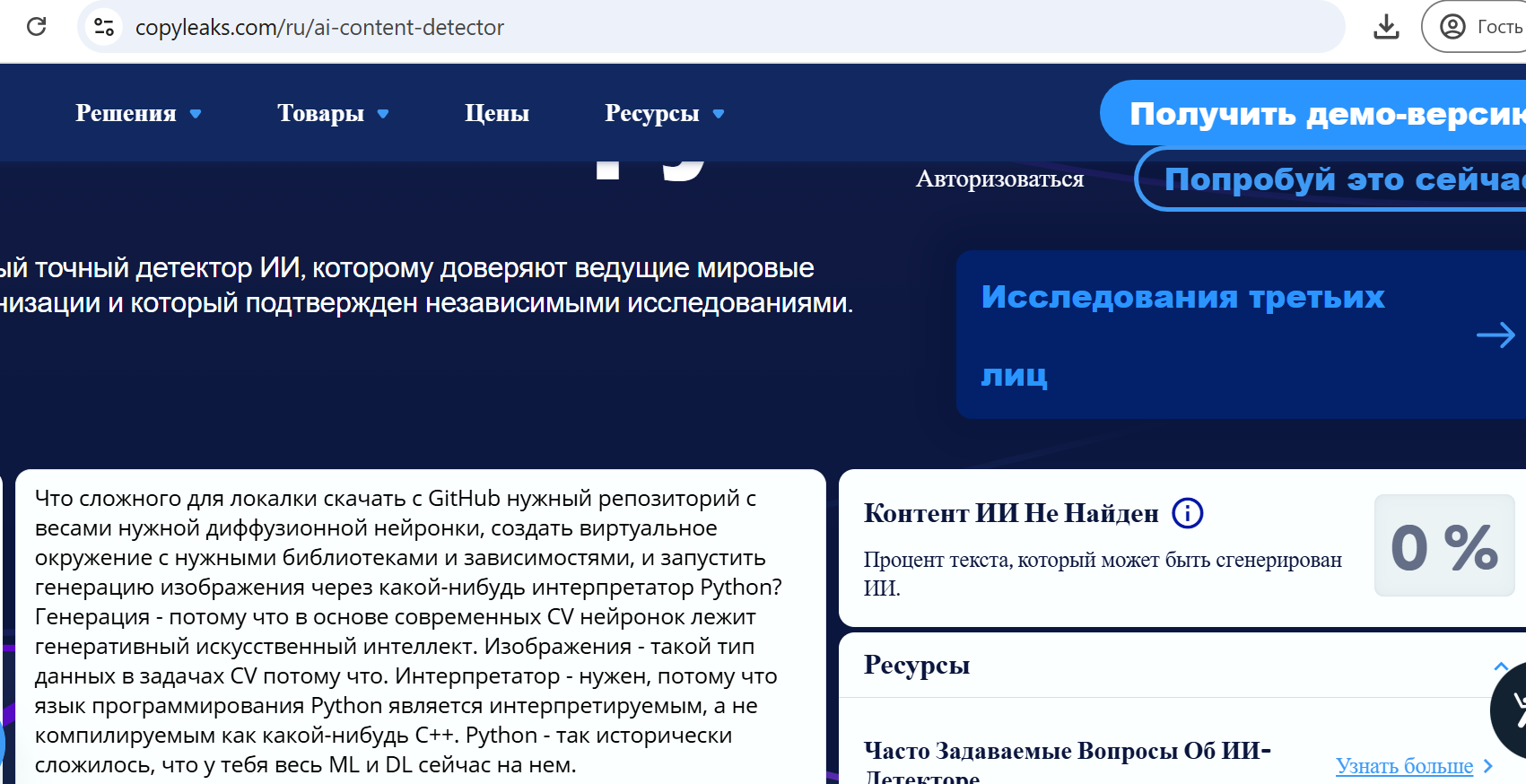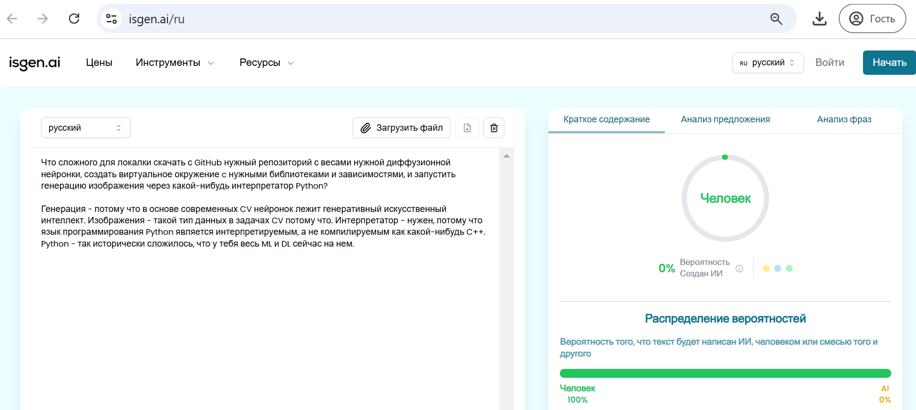 Использование конкретных терминов: "CV нейронка", "генеративный искусственный интеллект", "интерпретатор", "язык программирования Python" — это термины, которые обычно ИИ модели обычно используют в своих ответах. В реальной жизни и разговорах используют упрощенные названия.