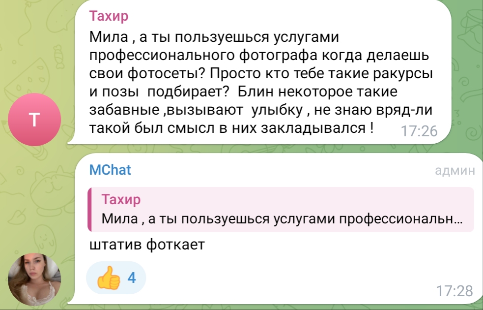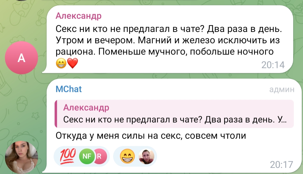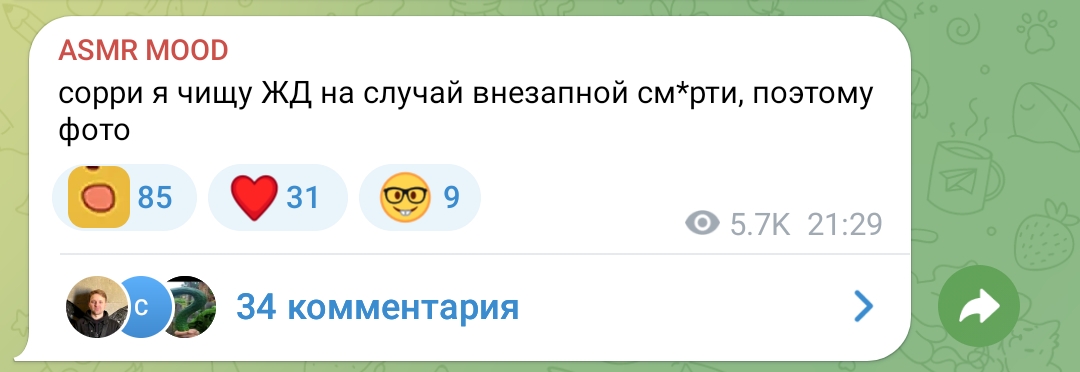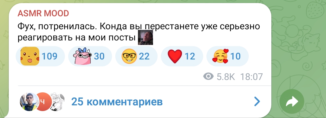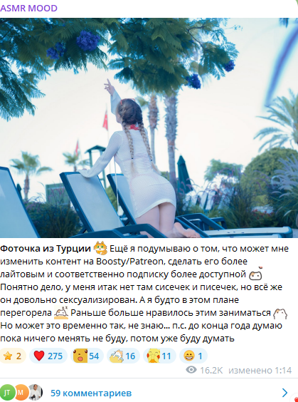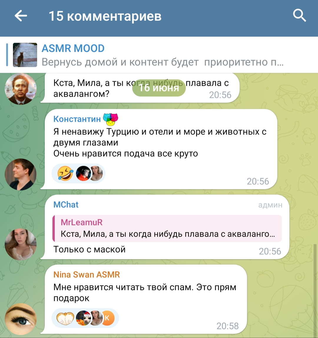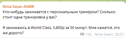 Учитесь как пиздеть не краснея. Буквально каждый ТГ наших асмрщиц. 5 Июня пишет, что в зал приоделась, 10 июня пишет что 2 месяца там не была. Вот так и живем в пиздеже.