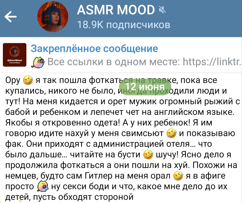 может быть, я еще не наткнулась на особенный асмр, где тварь не выебывалась бы, или еще что, врала например, как это делает таня, марио, лена, анус, и тд подобным которых интересуют только ДЕНЬГИ ваш ебаный кошелек
