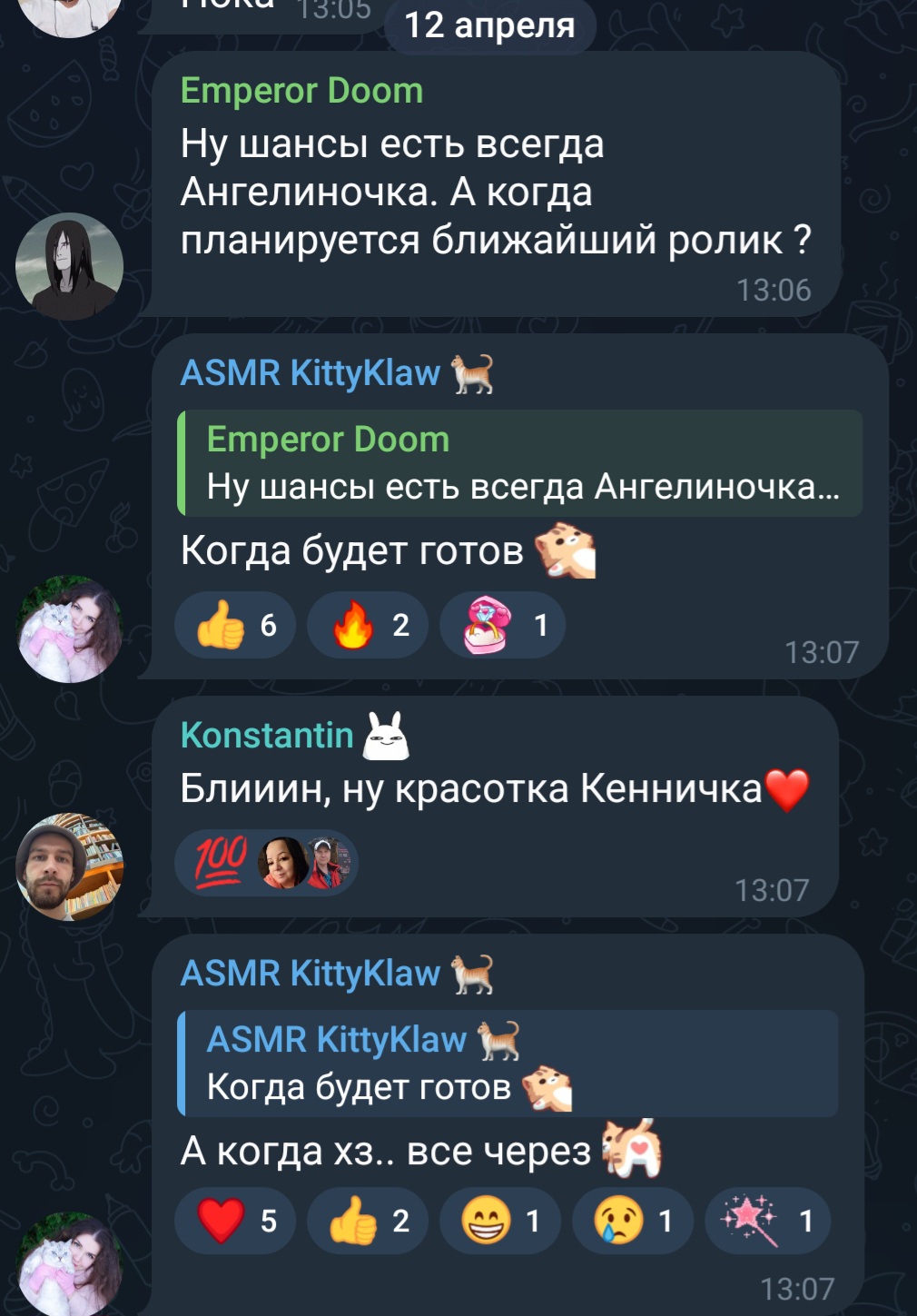 все хотят настоящую Ангелину, все хотят секси видосики, интересные РП пошленькие, стримы на Бусти/Фансли в стиле Муны и регулярный контент, а не наёбка с подписками, она же прекрасно видит дни в которые у людей подписка слетает и специально ждёт, когда они отпишутся и лишь после что-то постит. может это и даёт эффект, но это омерзительно и знакомых, с которыми мы общались на эту тему такое же отношение, просто челы считают себя умнее своих подписчиков, типа раз ты на меня подписался, то ты идиот, тебя можно наёбывать, им реально сложно поверить, что люди это делают от чистого сердца, желая поддержать СОЗДАНИЕ СЕКСИ КОНТЕНТА, чтобы творец привлекал ещё больше фанов и получал ещё больше денег