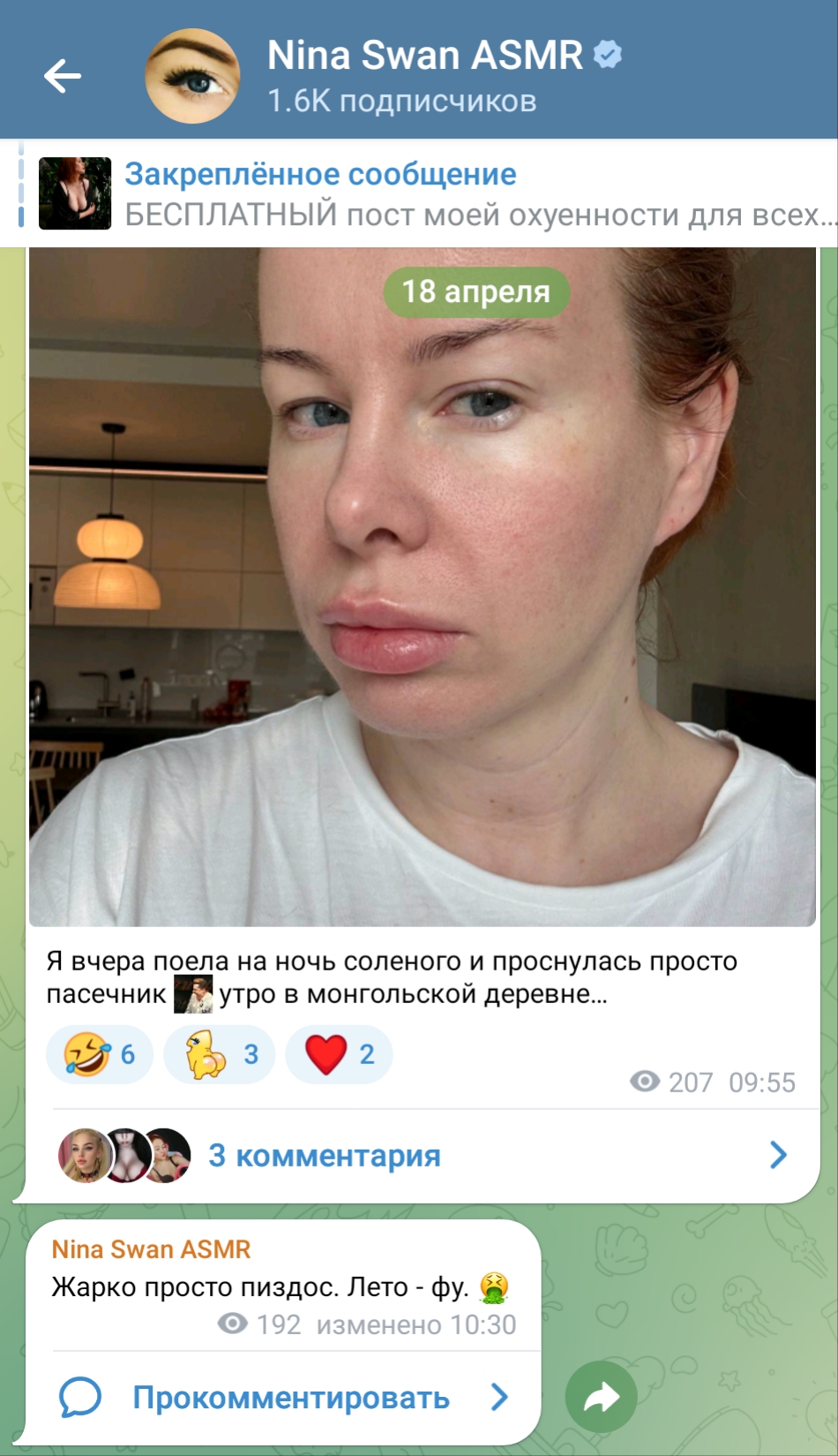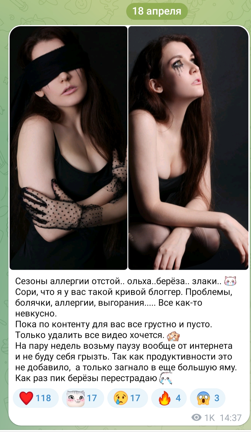 Самая создала себе проблемы с ретушированием с этой накладной грудью и так заебалась, что решила выкатить вот "это". Как же ей похуй. Какие же терпилы подписота. Нет слов.